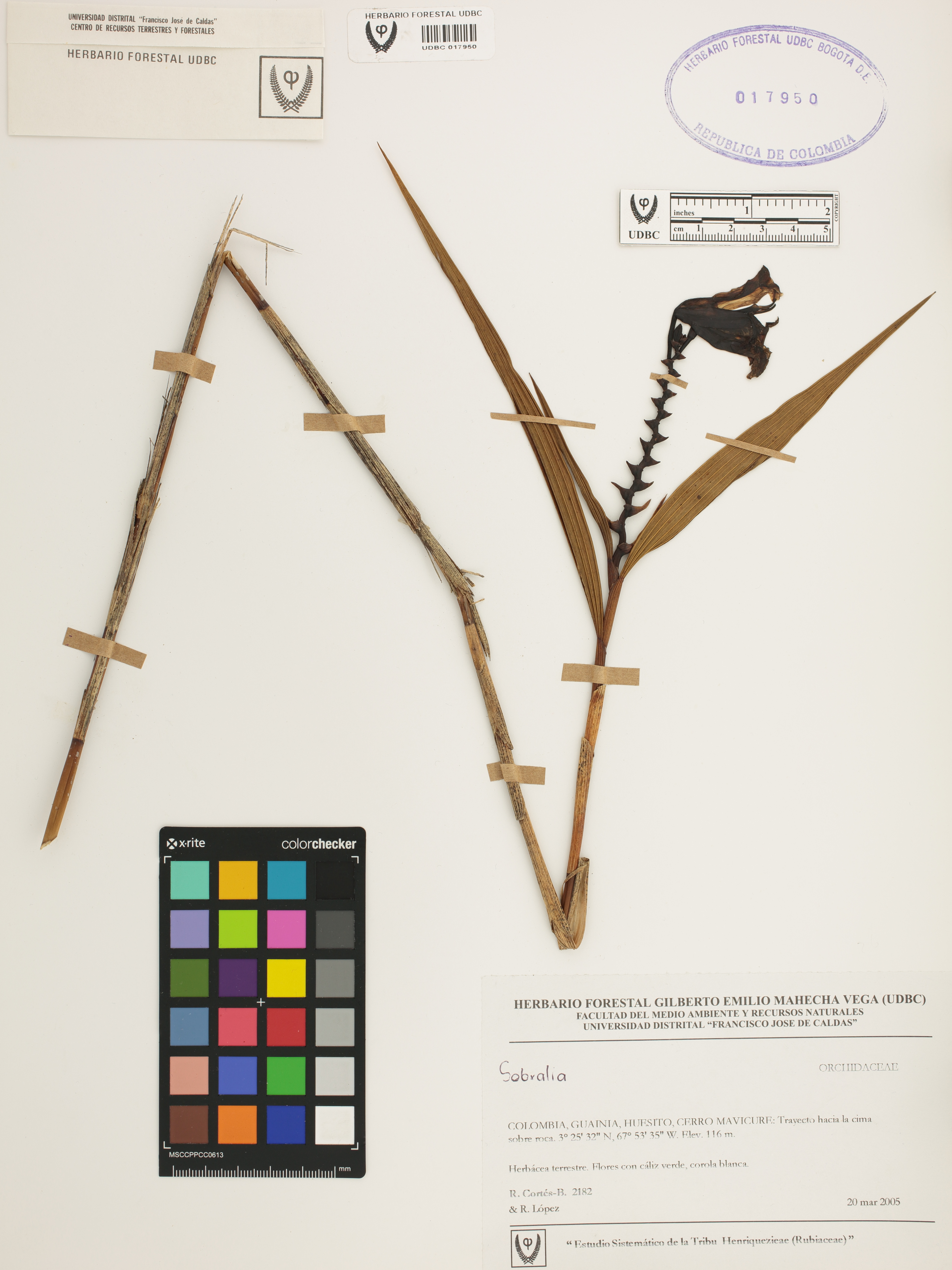| dc.description | Fotografía del ejemplar Cortés-B., R. 2182, determinado como Sobralia sp. | |