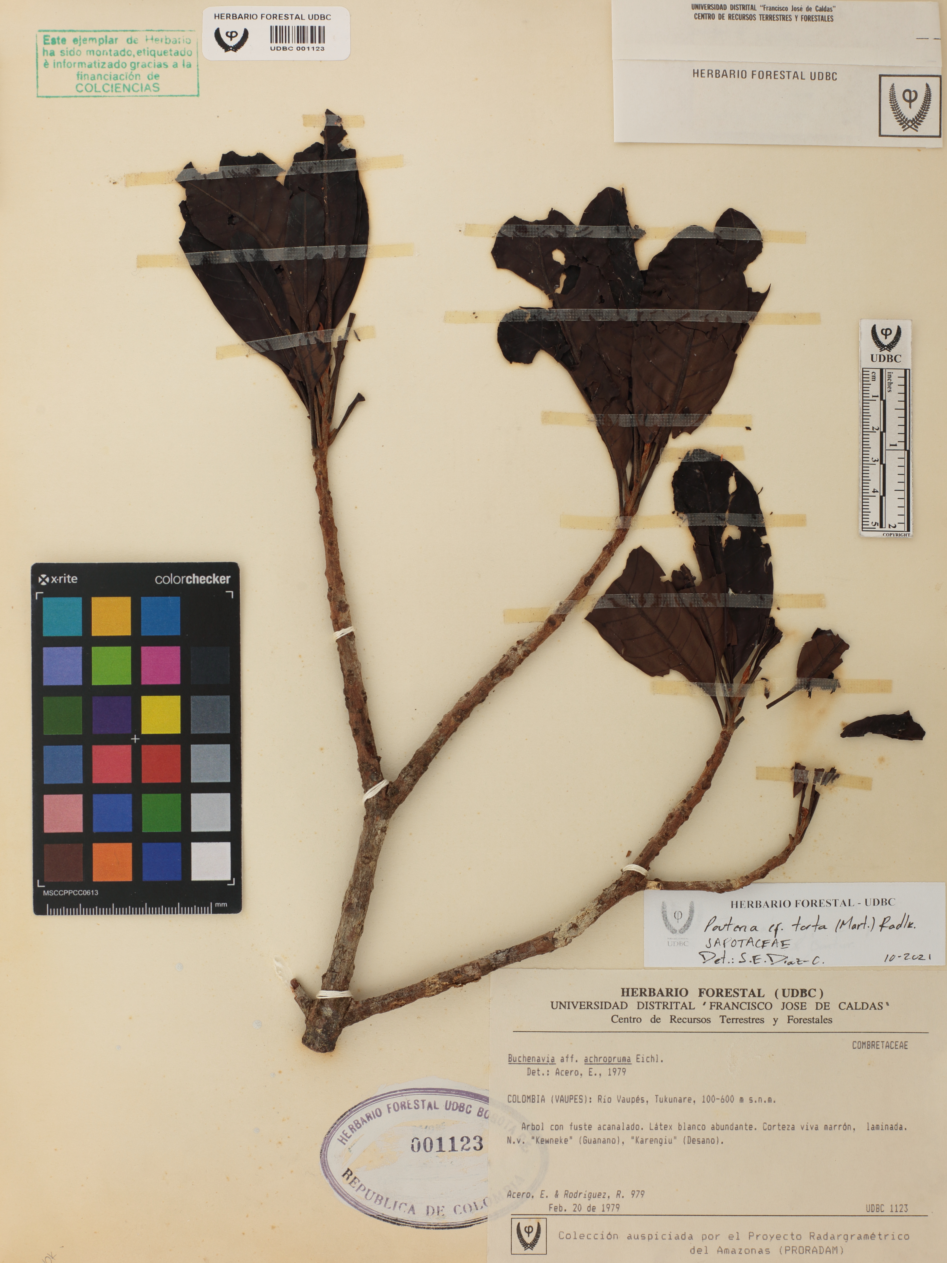 Fotografía del ejemplar Acero, E. 979, determinado como Pouteria torta en el año 2021