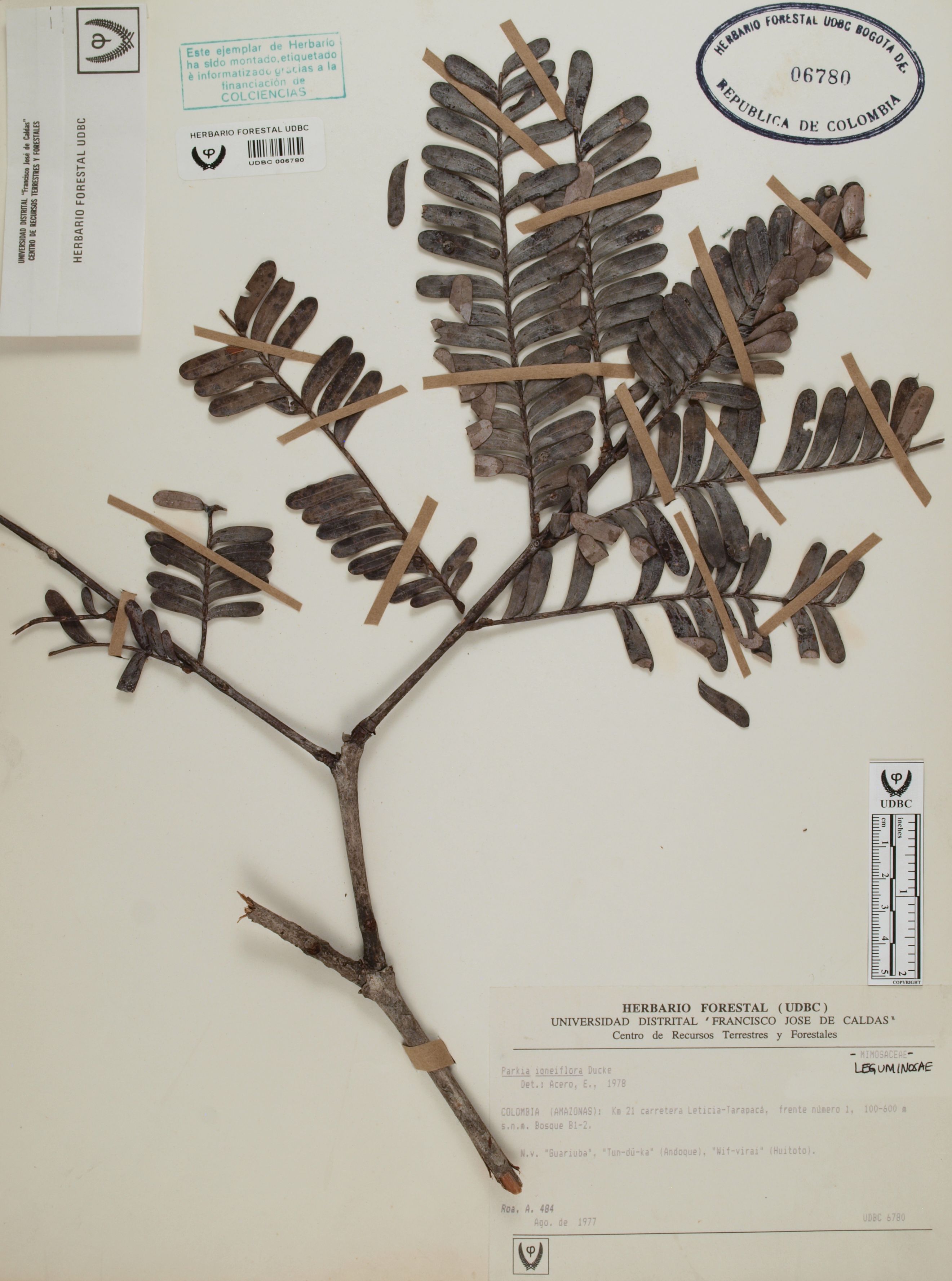 | dc.description | Fotografía del ejemplar Roa, A. 484, determinado como Parkia igneiflora en el año 1978 | |