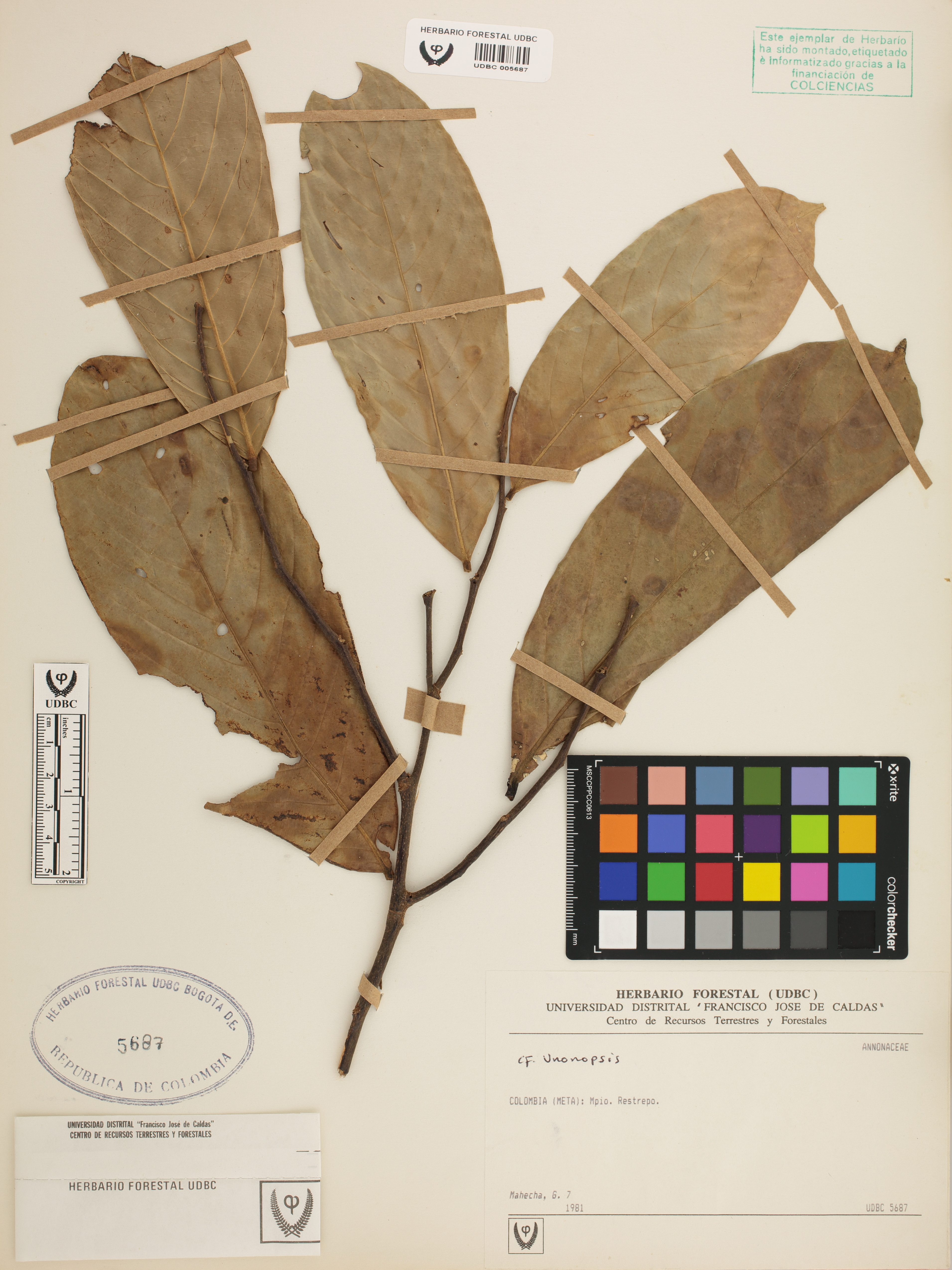 | dc.description | Fotografía del ejemplar Mahecha, G. 7, determinado como Unonopsis sp. | |