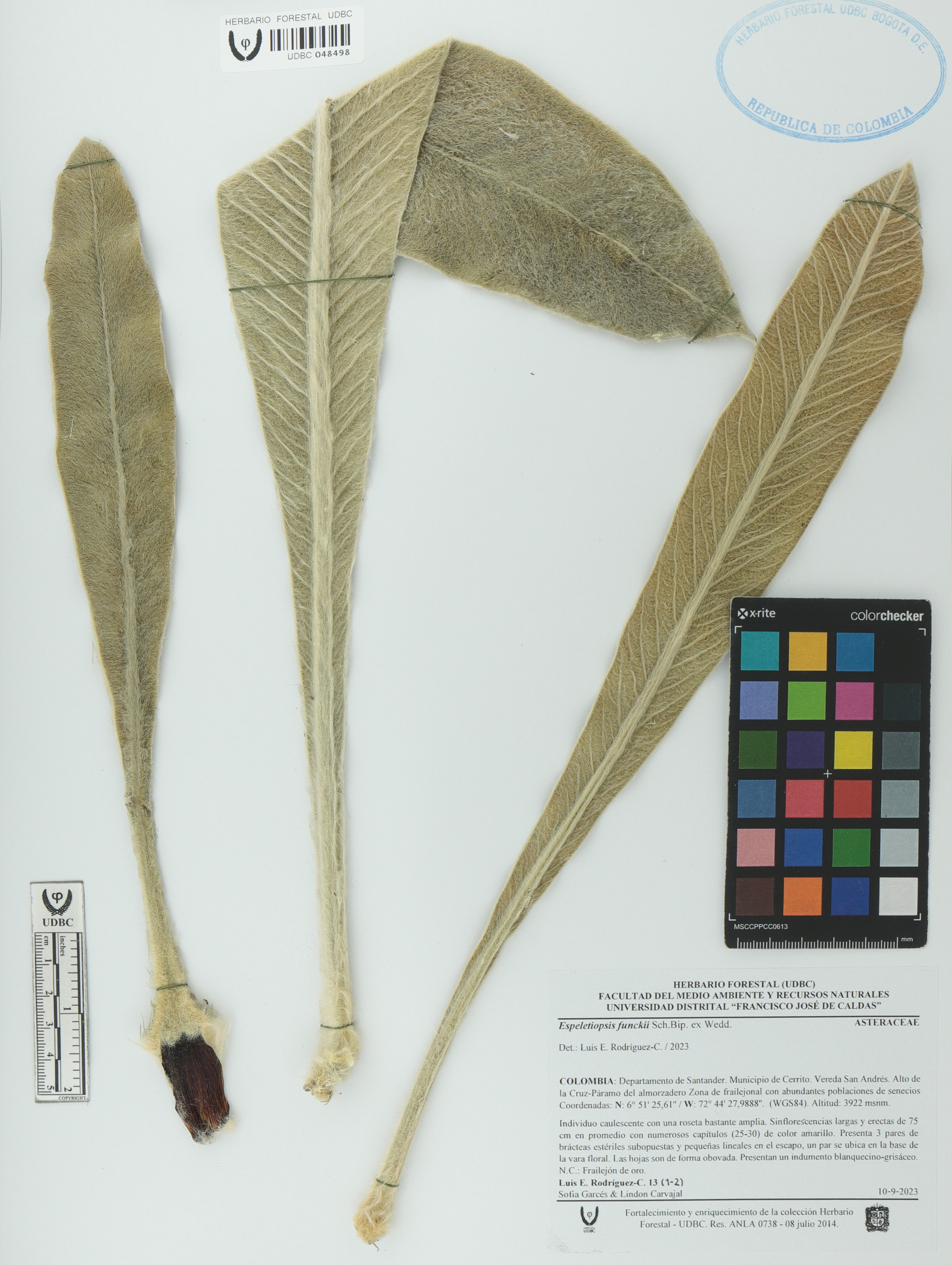 Fotografía del ejemplar Rodríguez-C., Luis 13, determinado como Espeletiopsis funckii en el año 2023