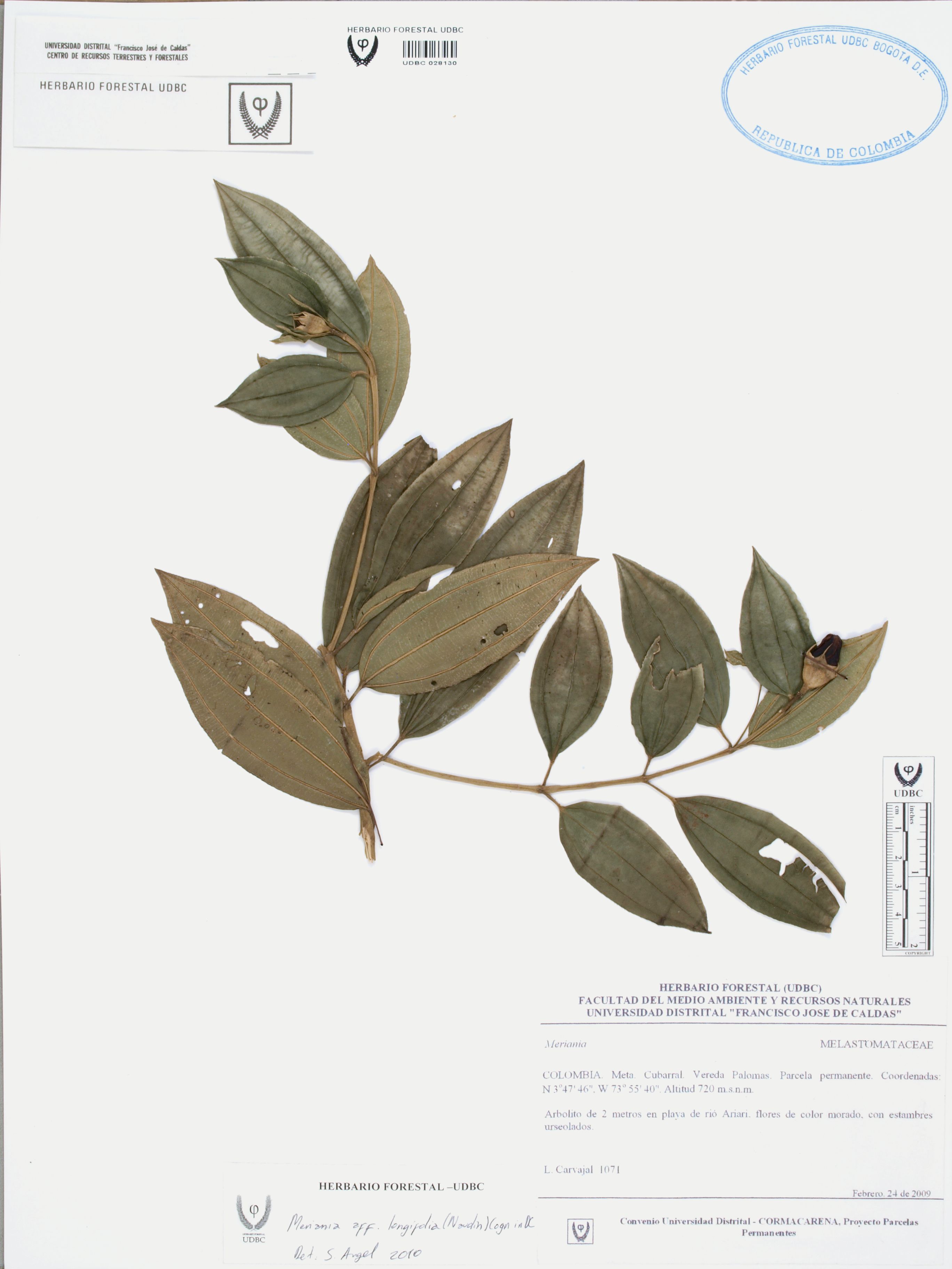 Fotografía del ejemplar Carvajal, L. 1071, determinado como Meriania longifolia en el año 2010