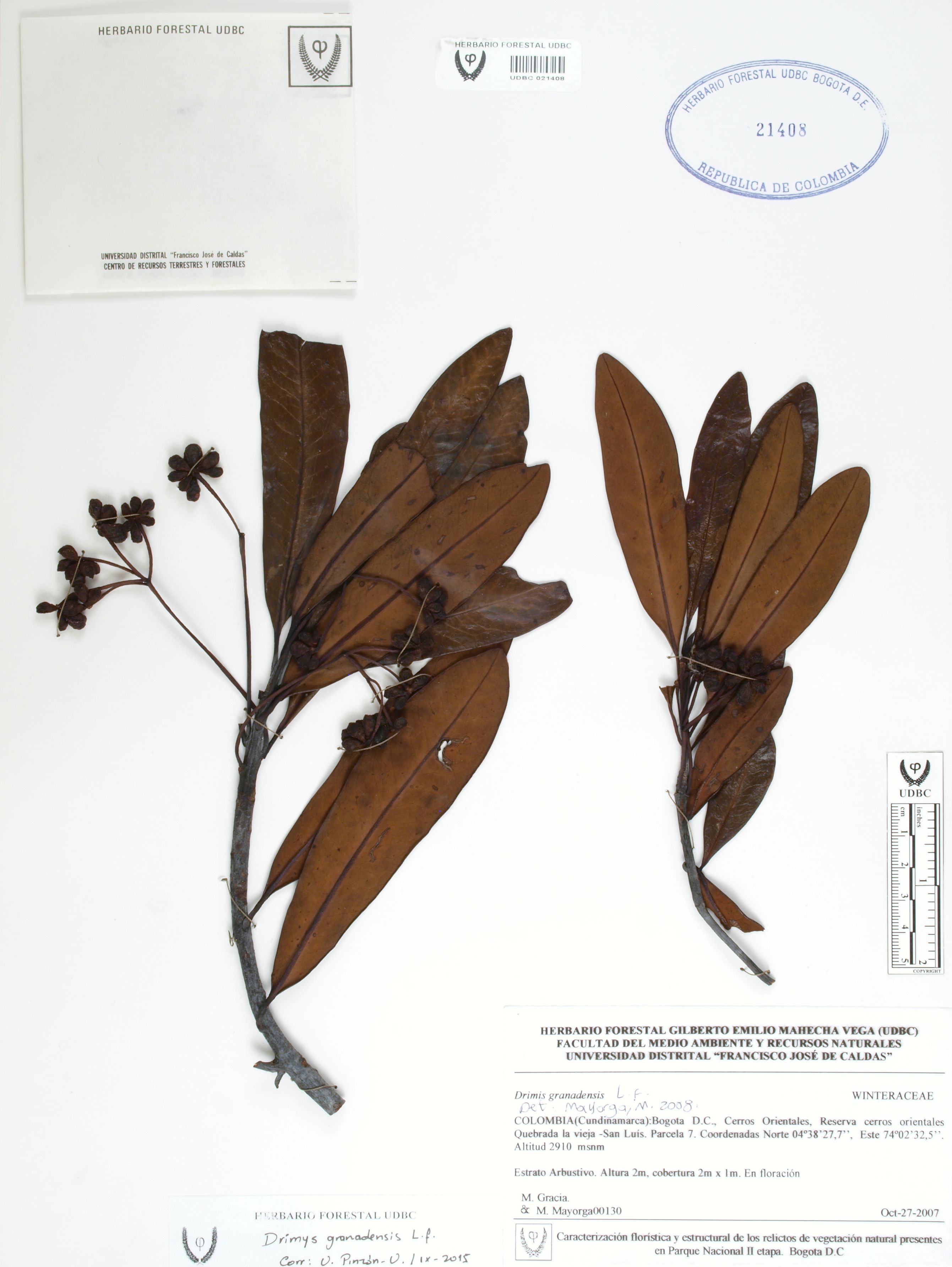 Fotografía del ejemplar Gracia, M. 130, determinado como Drimys granadensis en el año 2008