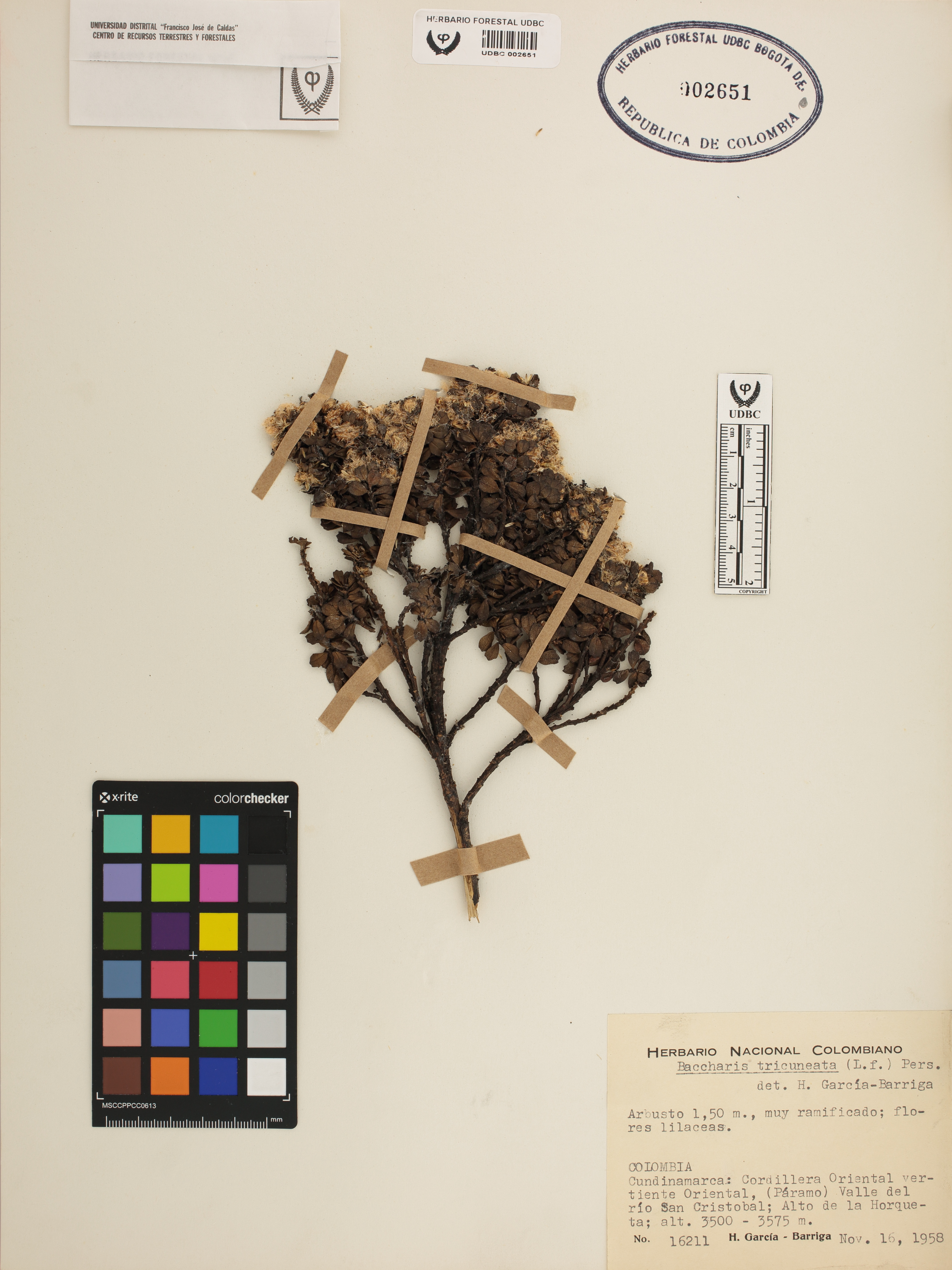 Fotografía del ejemplar García-B., H. 16211, determinado como Baccharis tricuneata