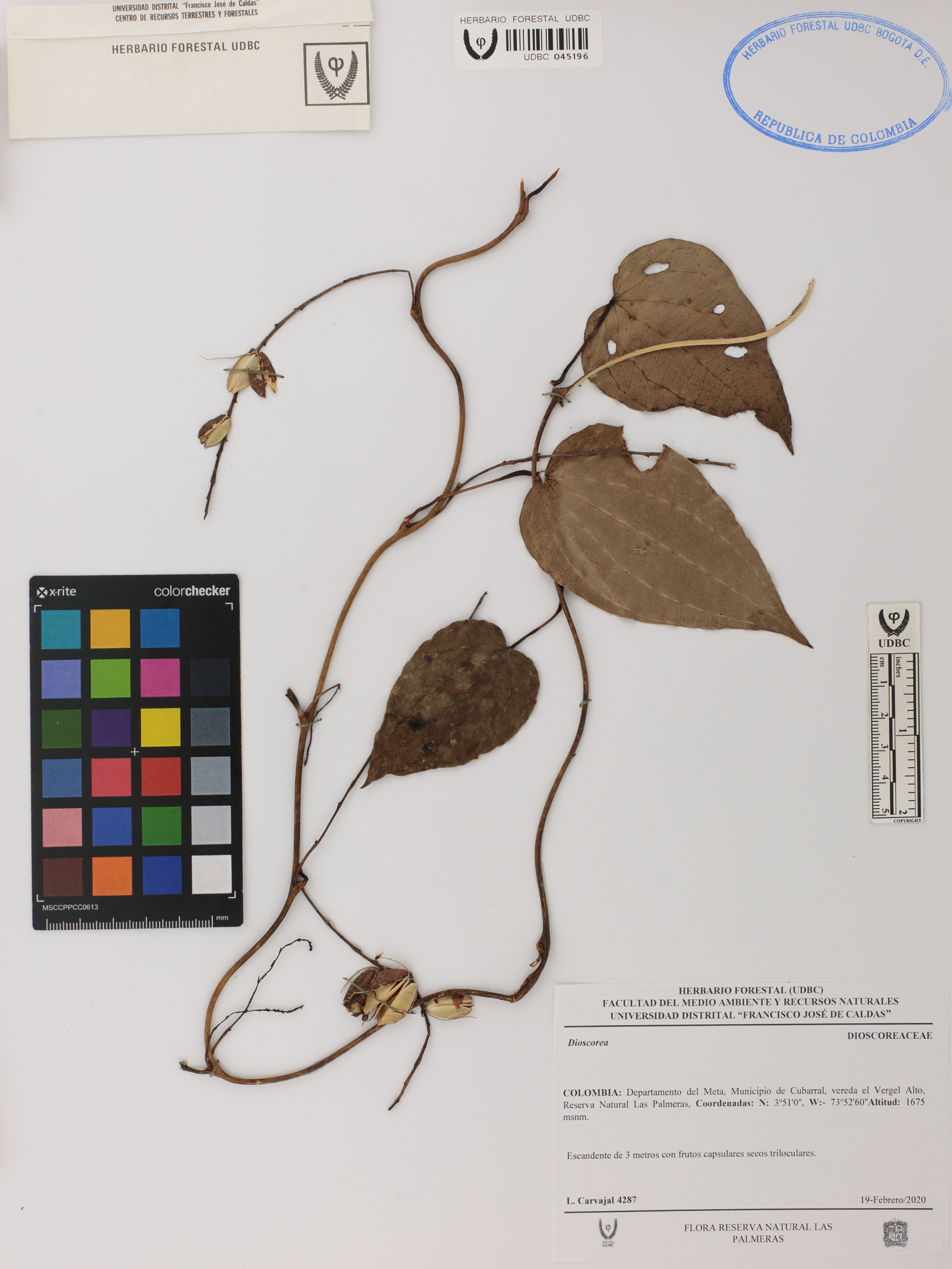 | dc.description | Fotografía del ejemplar Carvajal, L. 4287, determinado como Dioscorea sp. | |