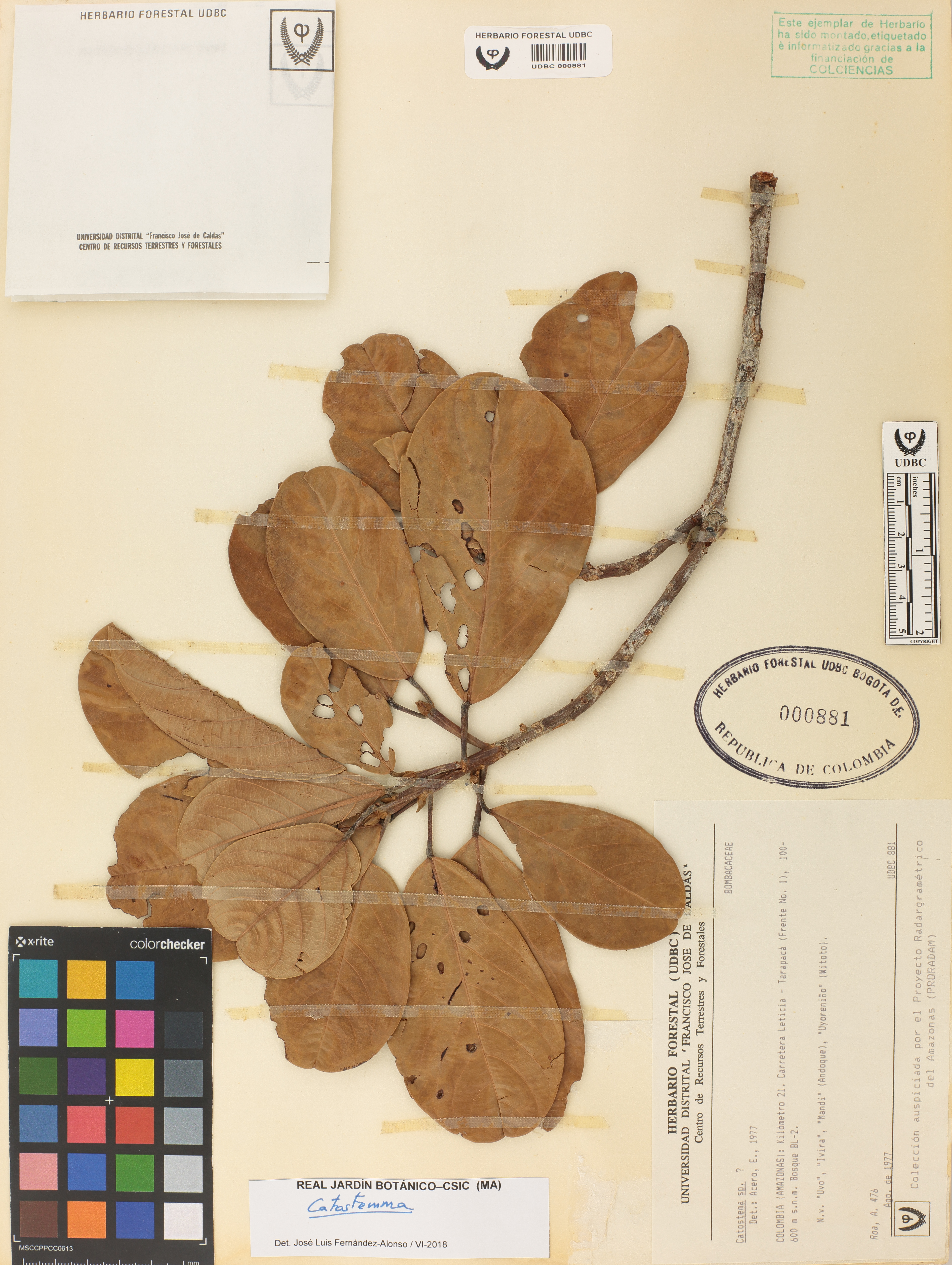 Fotografía del ejemplar Roa, A. 476, determinado como Catostemma sp. en el año 1977