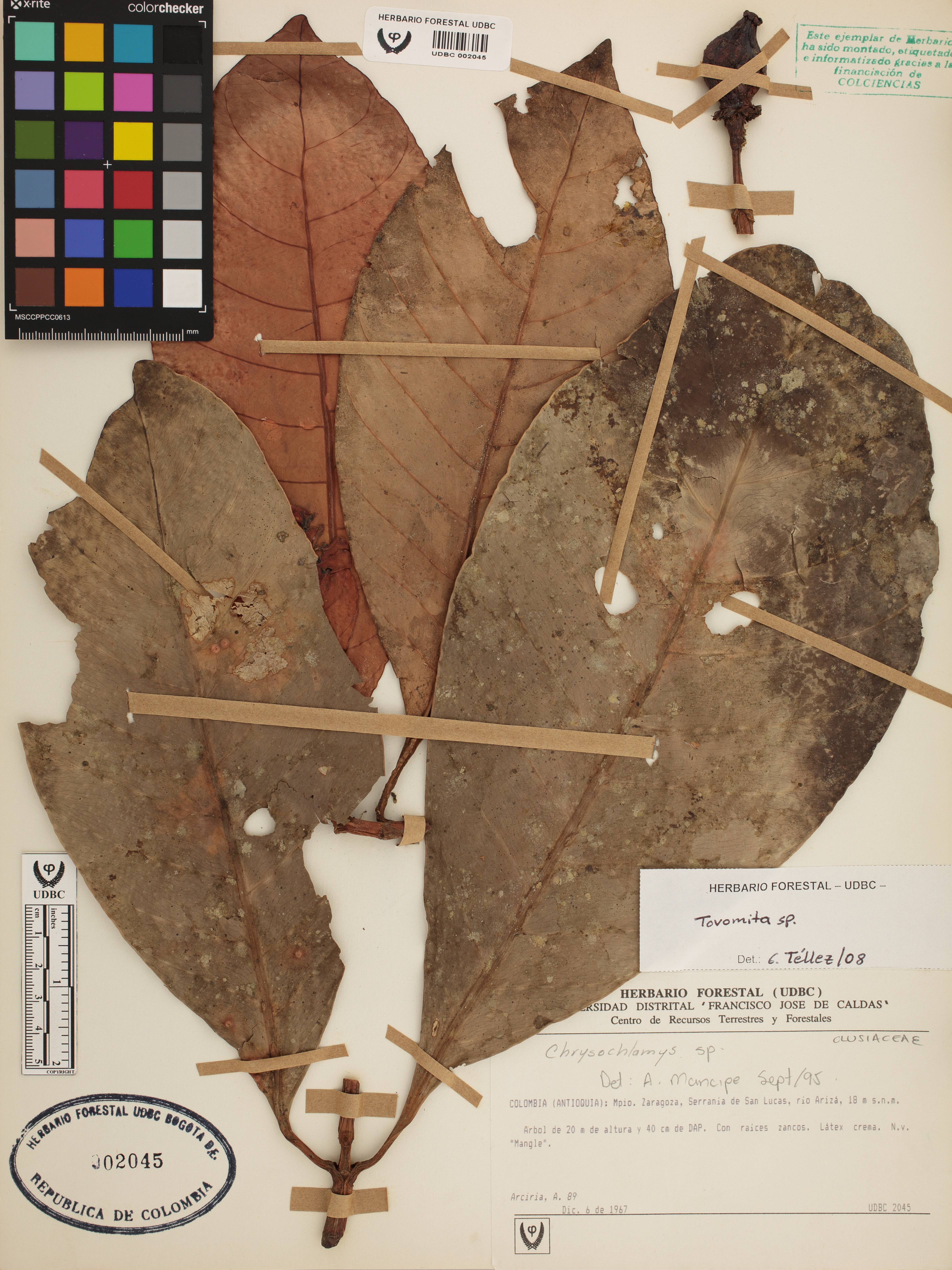 Fotografía del ejemplar Arciria, A. 89, determinado como Tovomita sp. en el año 2008