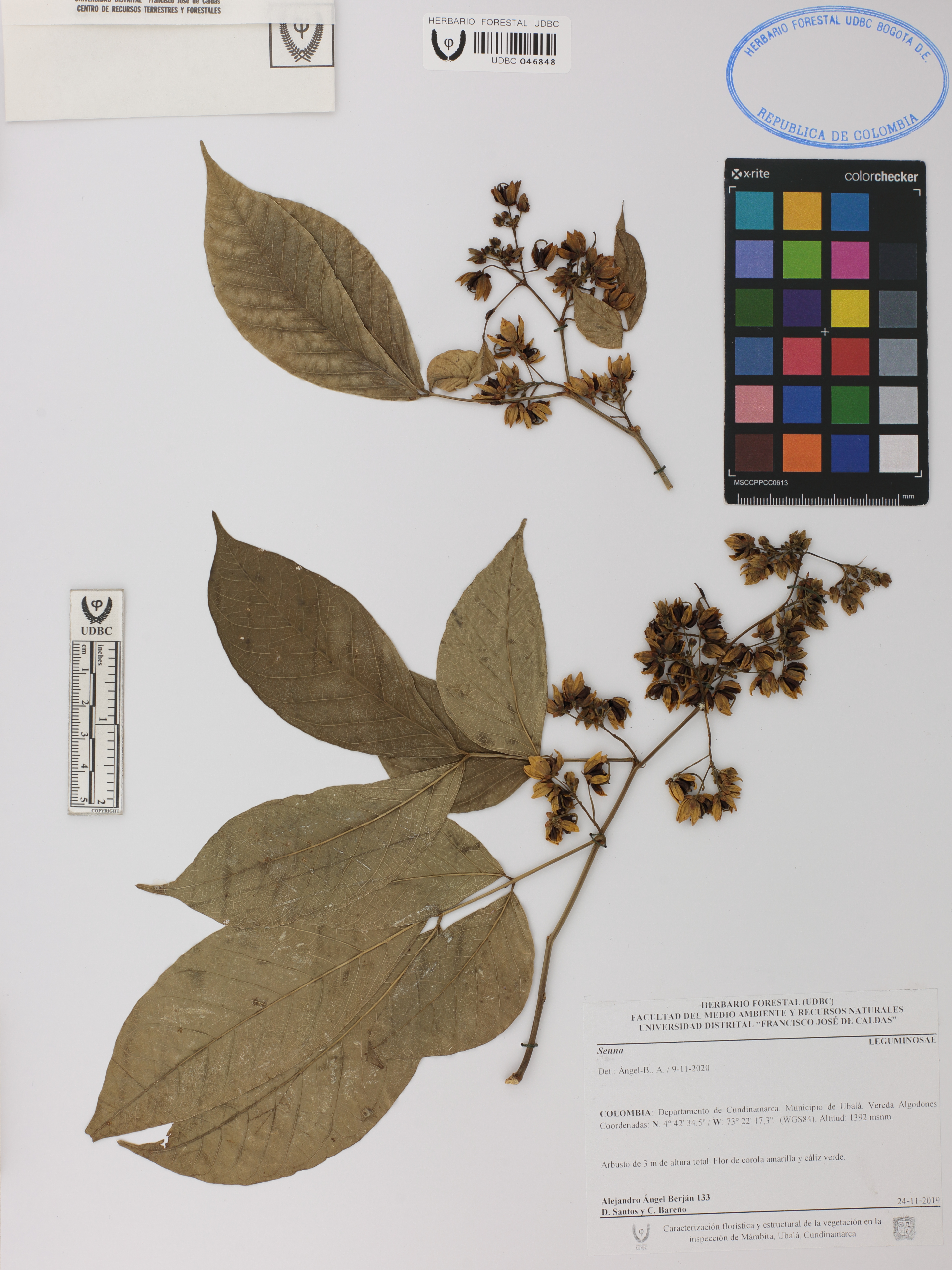 Fotografía del ejemplar Ángel-B., A. 133, determinado como Senna sp. en el año 2020