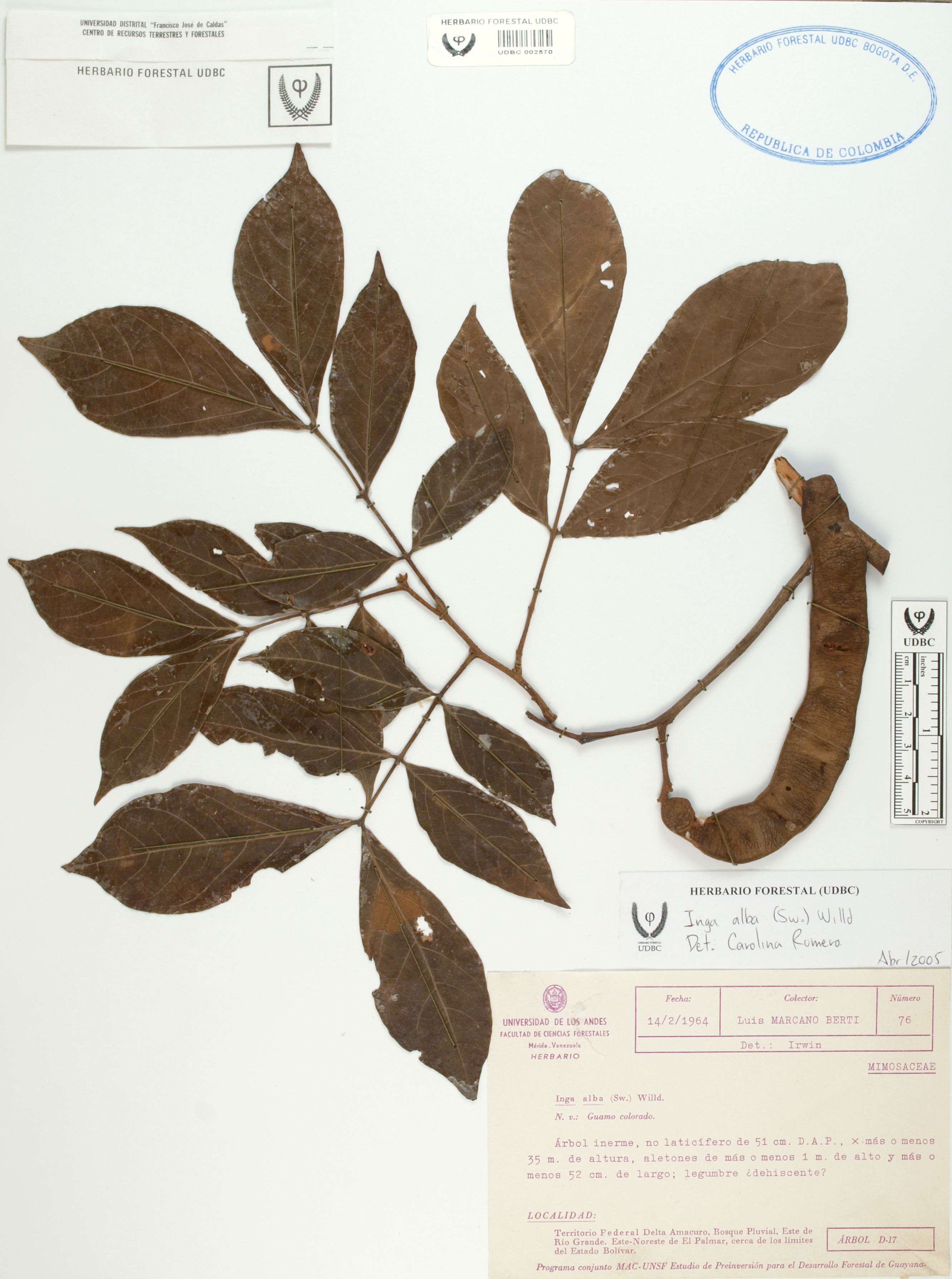 Fotografía del ejemplar Marcano, L. 76, determinado como Inga alba en el año 2005