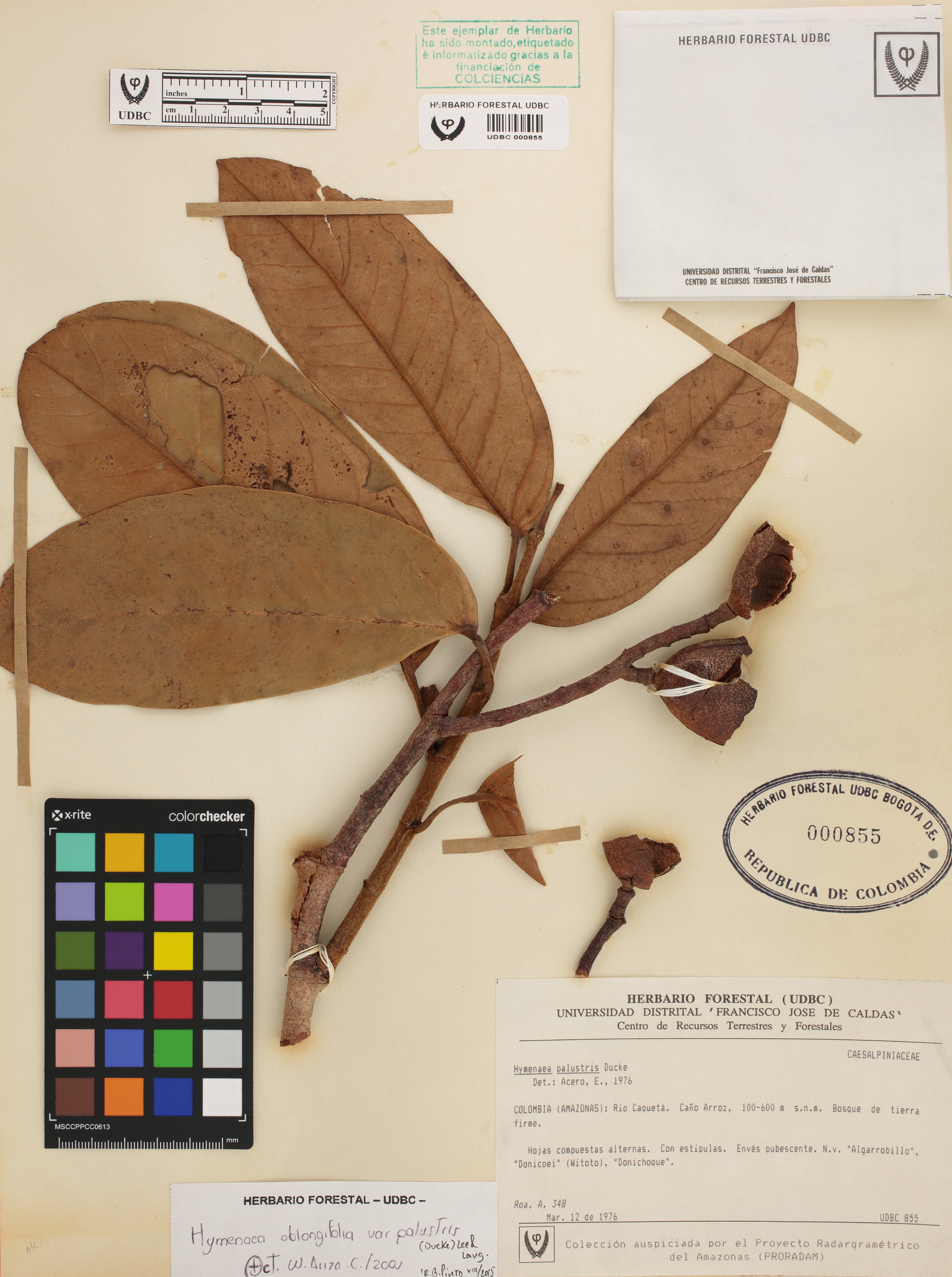 | dc.description | Fotografía del ejemplar Roa, A. 348, determinado como Hymenaea oblongifolia var. palustris en el año 2005 | |