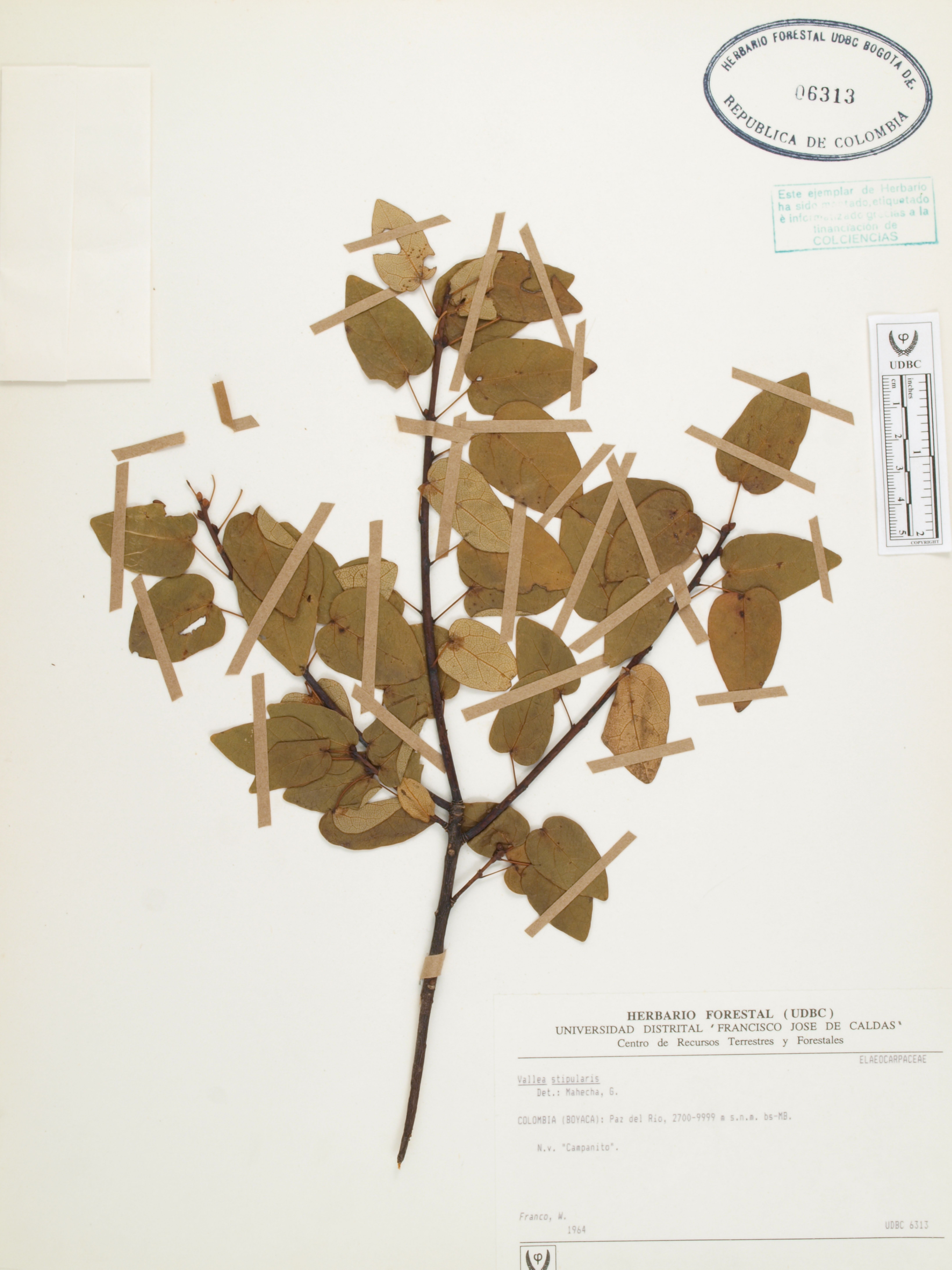 Fotografía del ejemplar Franco, W., determinado como Vallea stipularis