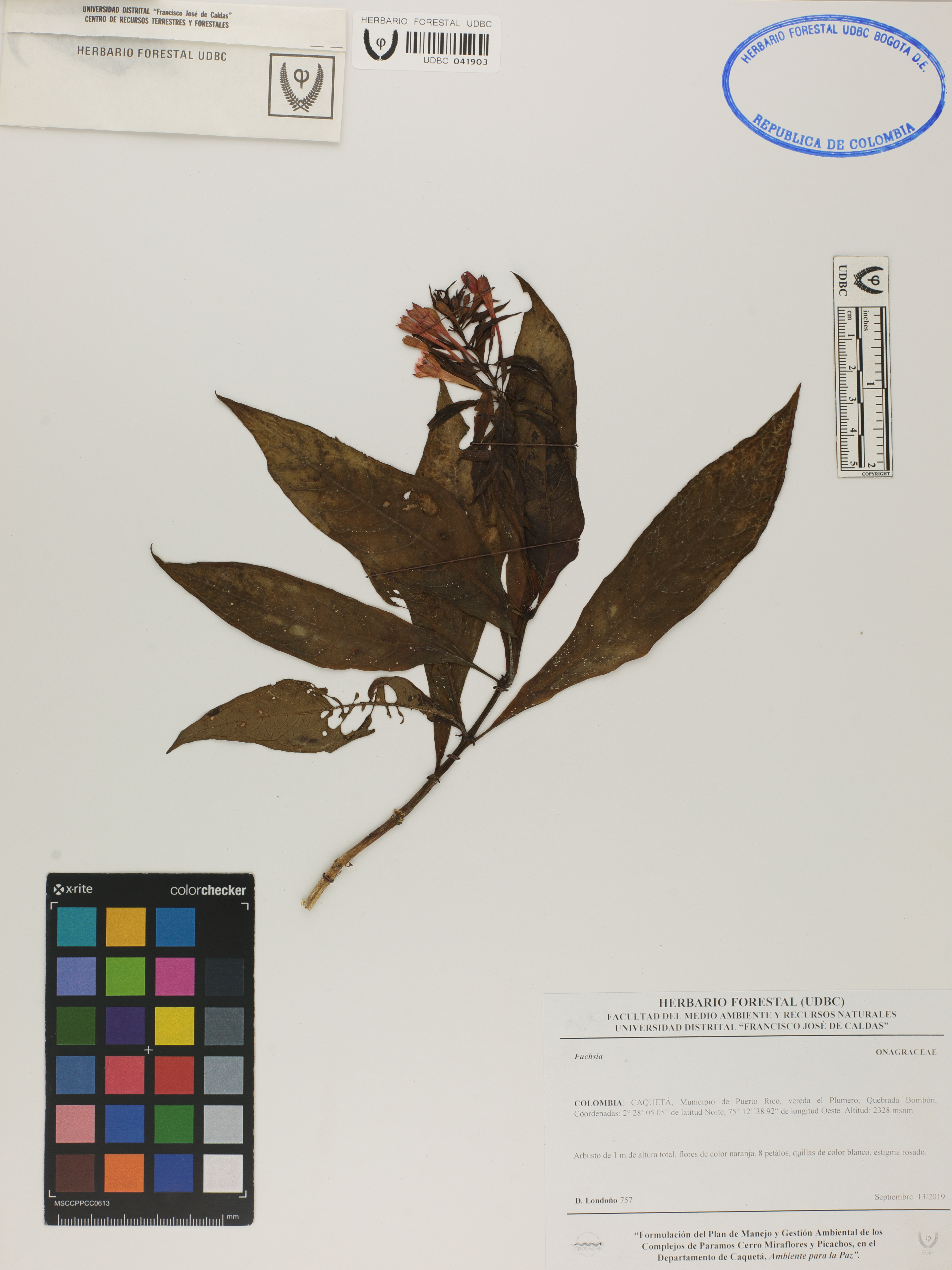Fotografía del ejemplar Londoño, D. 757, determinado como Fuchsia sp.
