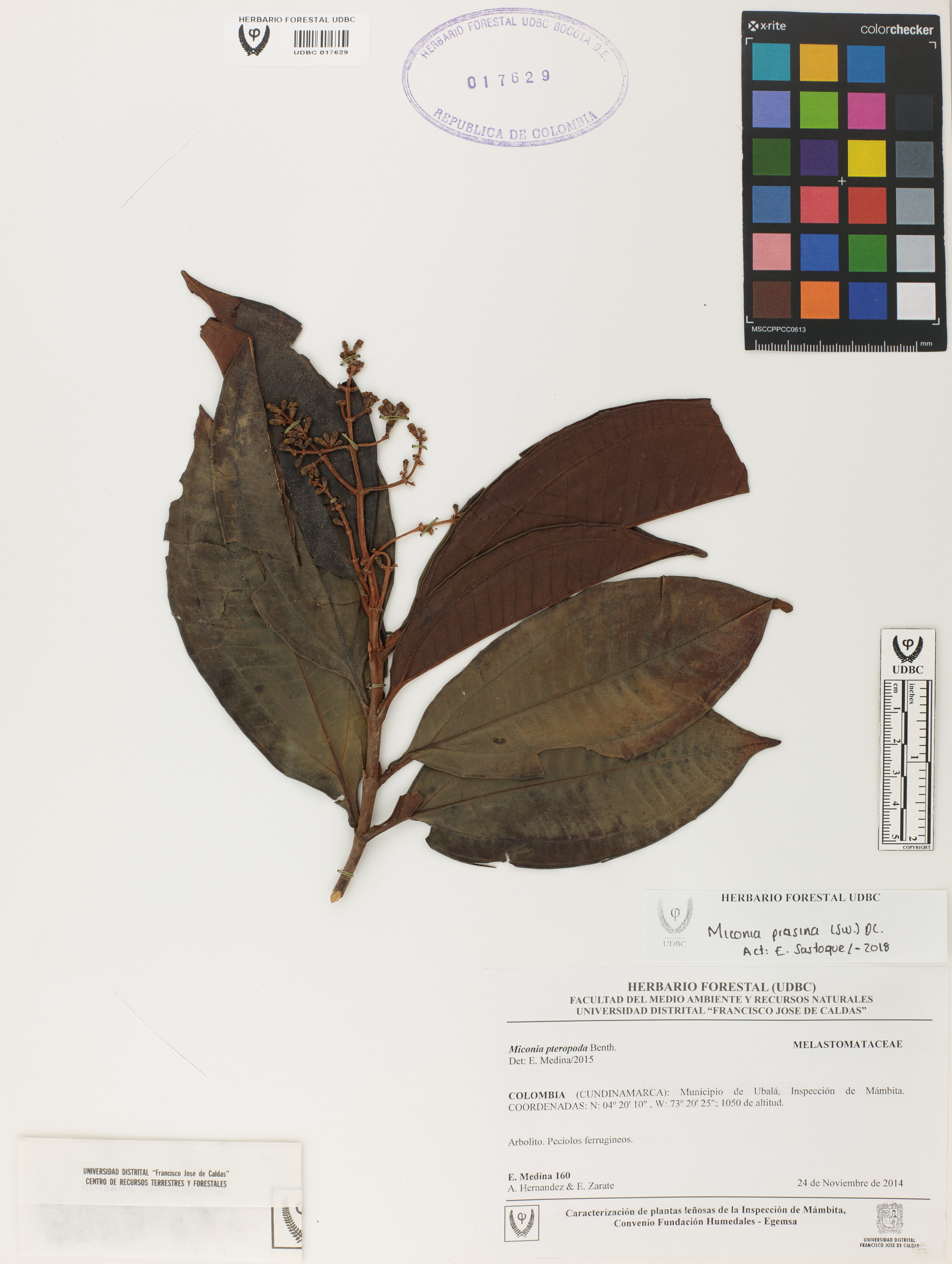 Fotografía del ejemplar Medina, E. 160, determinado como Miconia prasina en el año 2015