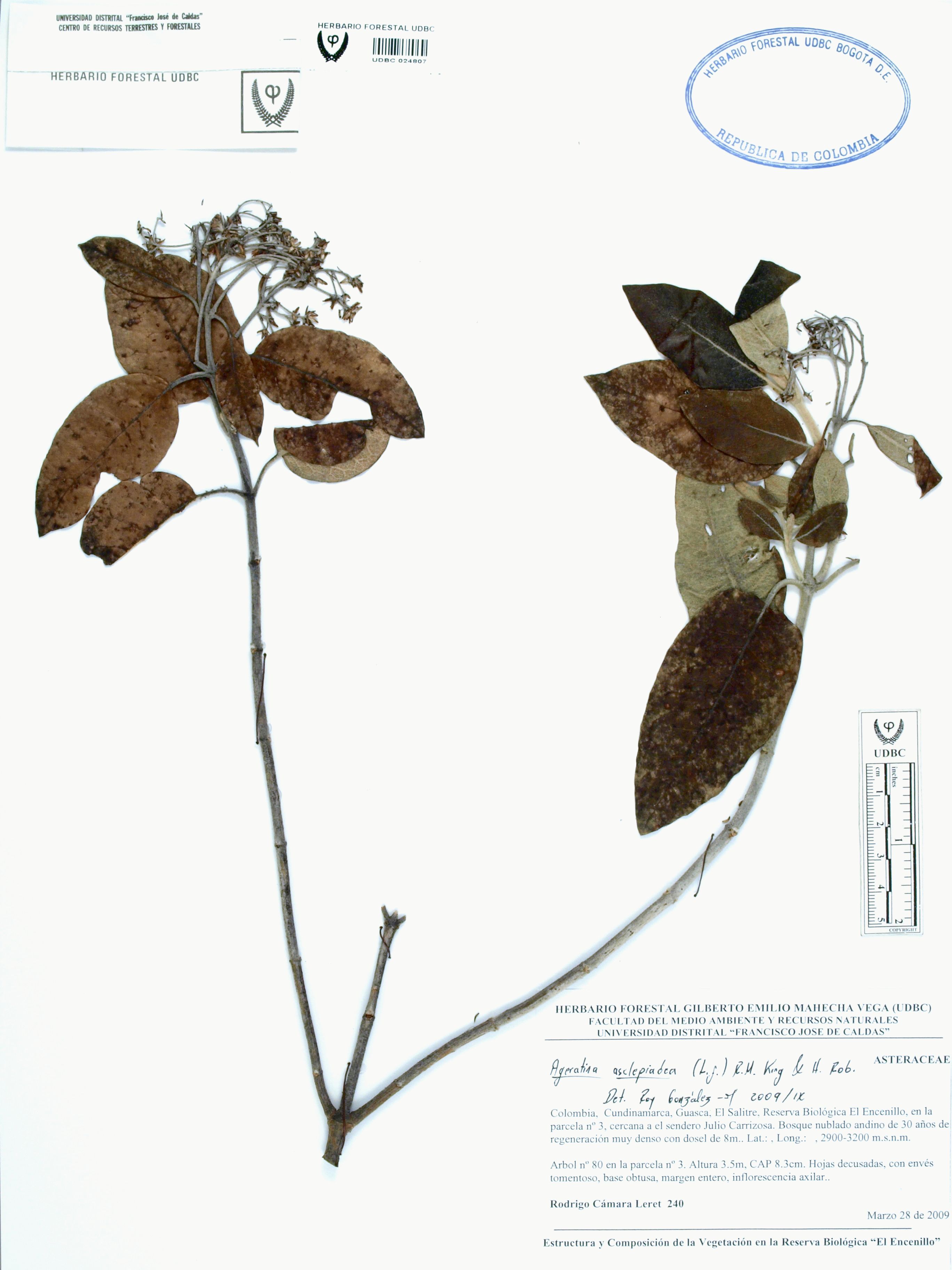 Fotografía del ejemplar Cámara, R. 240, determinado como Ageratina asclepiadea en el año 2009