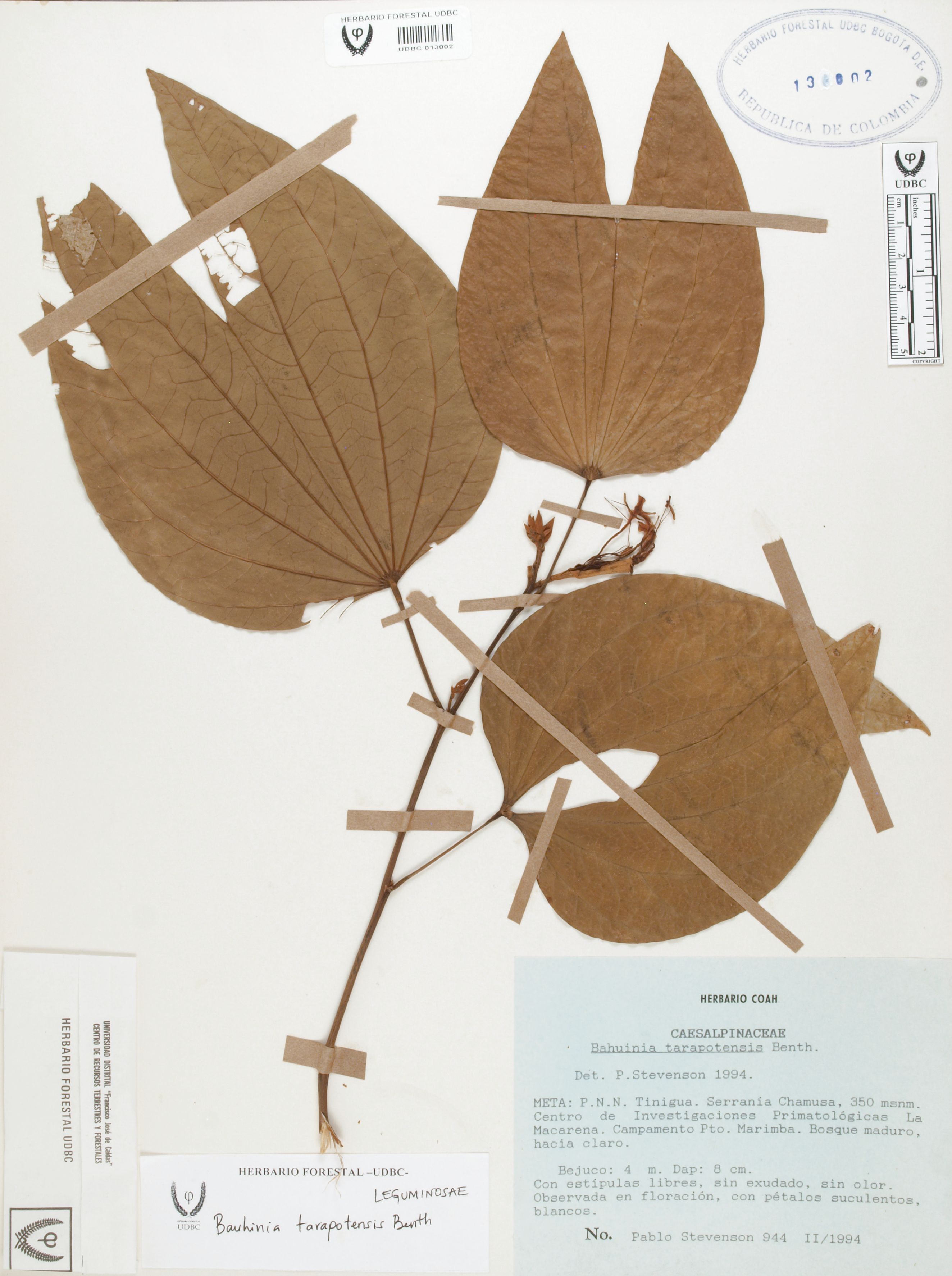 | dc.description | Fotografía del ejemplar Stevenson, P. 944, determinado como Bauhinia tarapotensis en el año 1994 | |