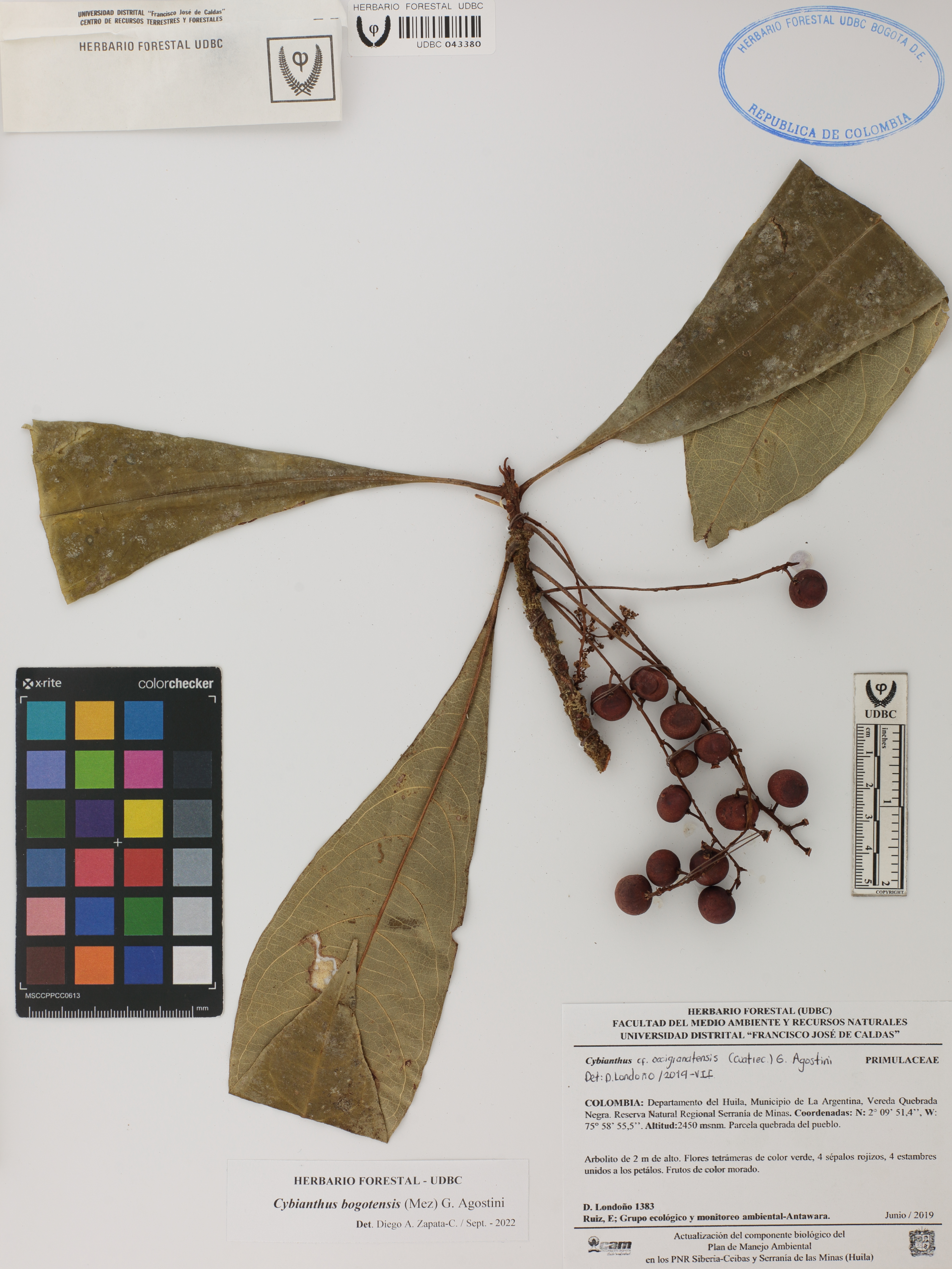 Fotografía del ejemplar Londoño, D. 1383, determinado como Cybianthus bogotensis en el año 2022