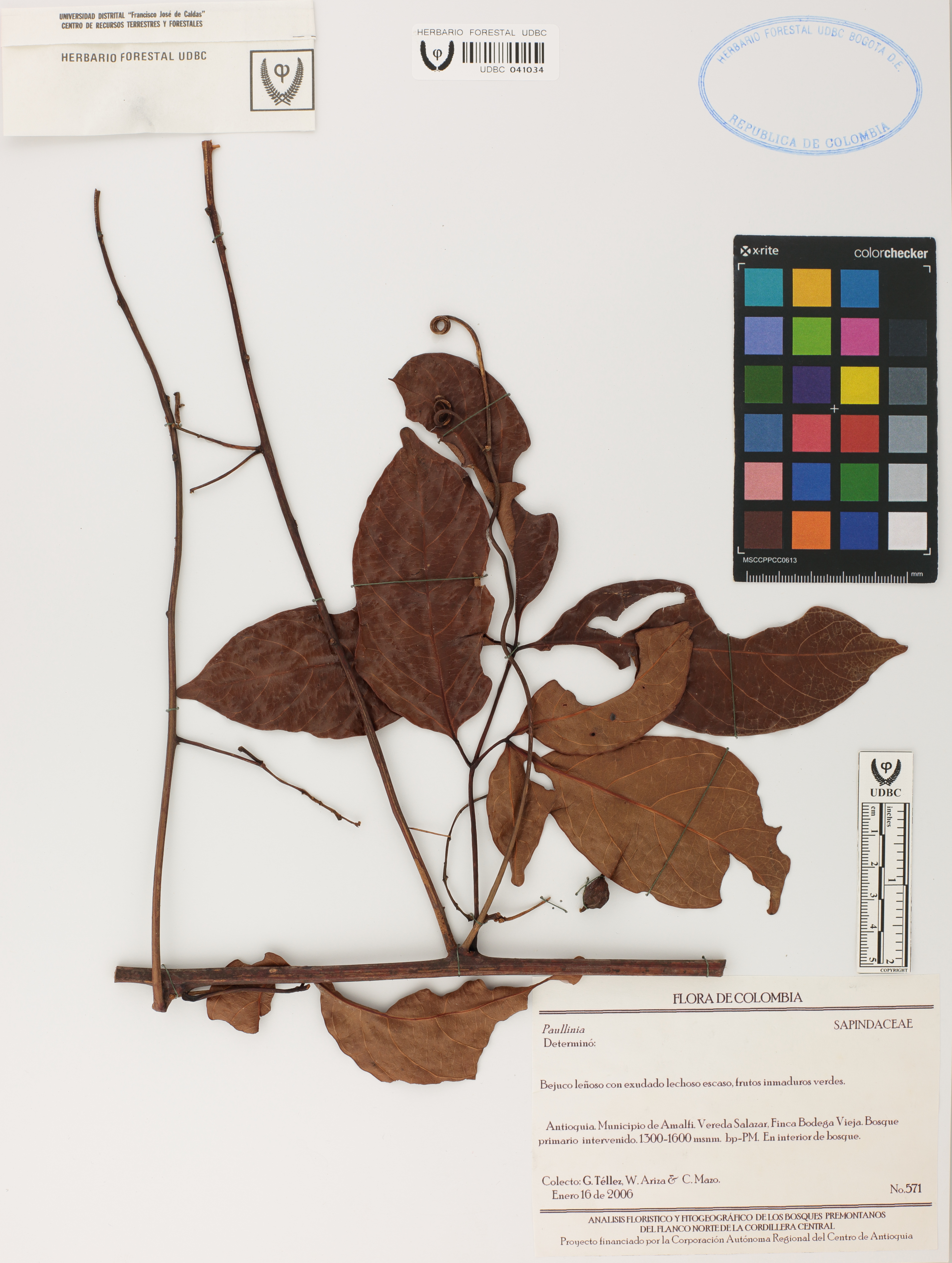 Fotografía del ejemplar Téllez, G. 571, determinado como Paullinia sp.