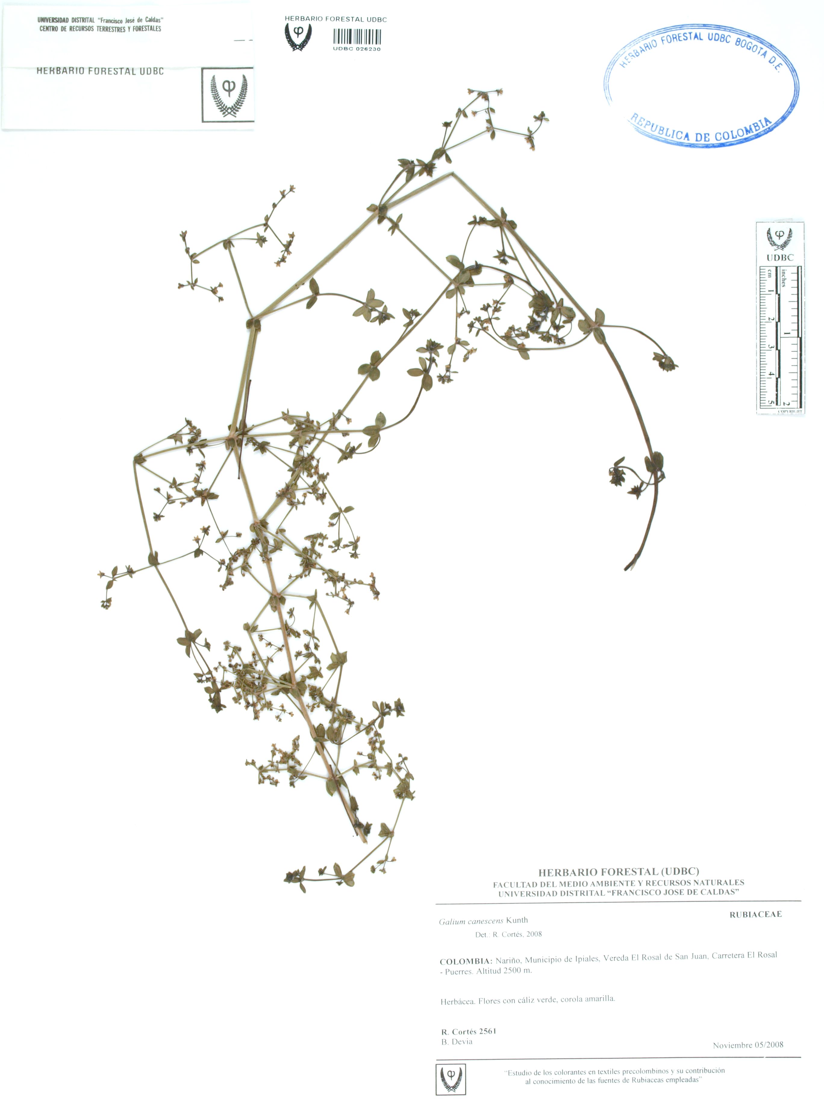Fotografía del ejemplar Cortés-B., R. 2561, determinado como Galium canescens en el año 2008