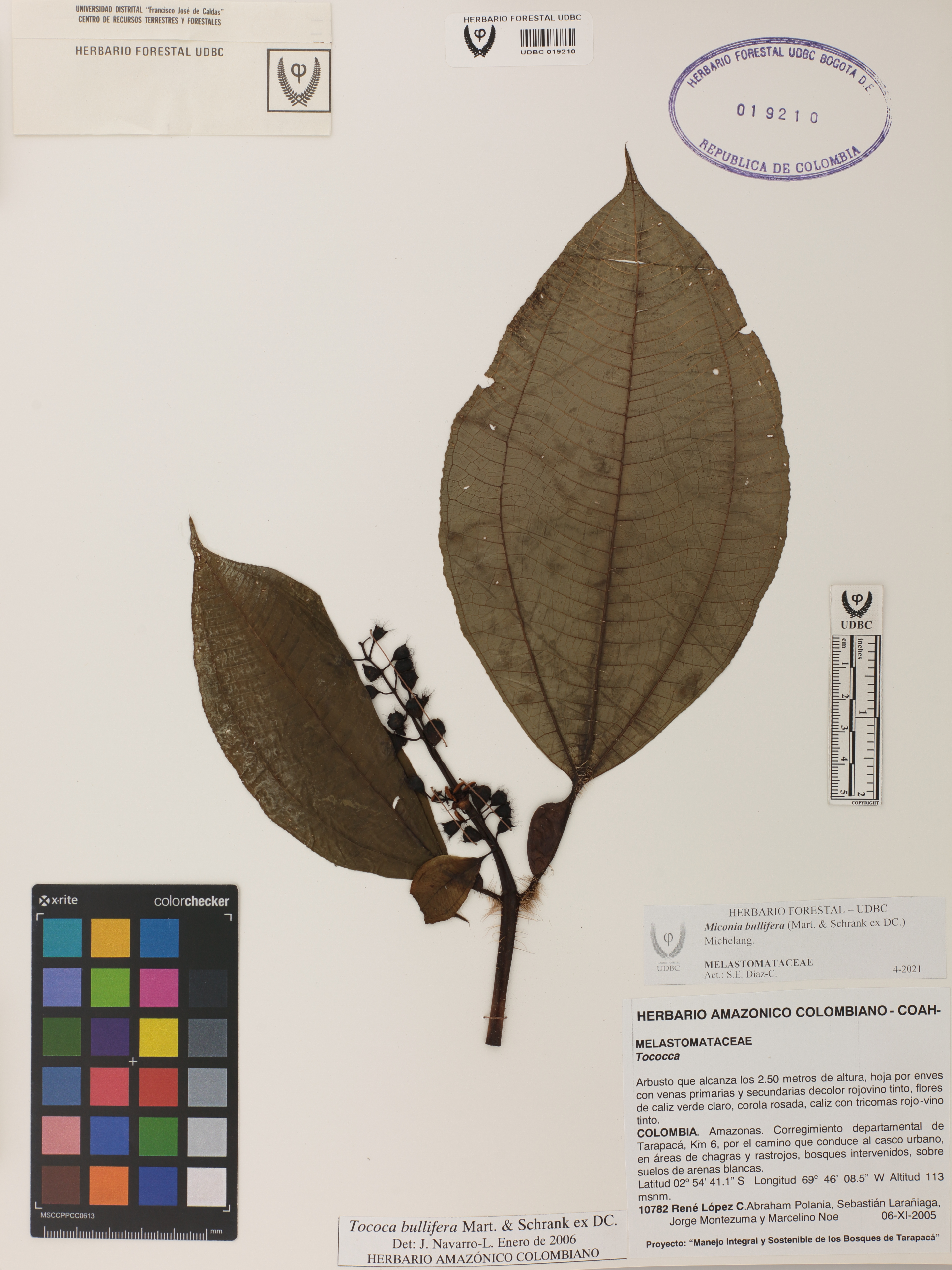 Fotografía del ejemplar López, R. 10782, determinado como Miconia bullifera en el año 2006