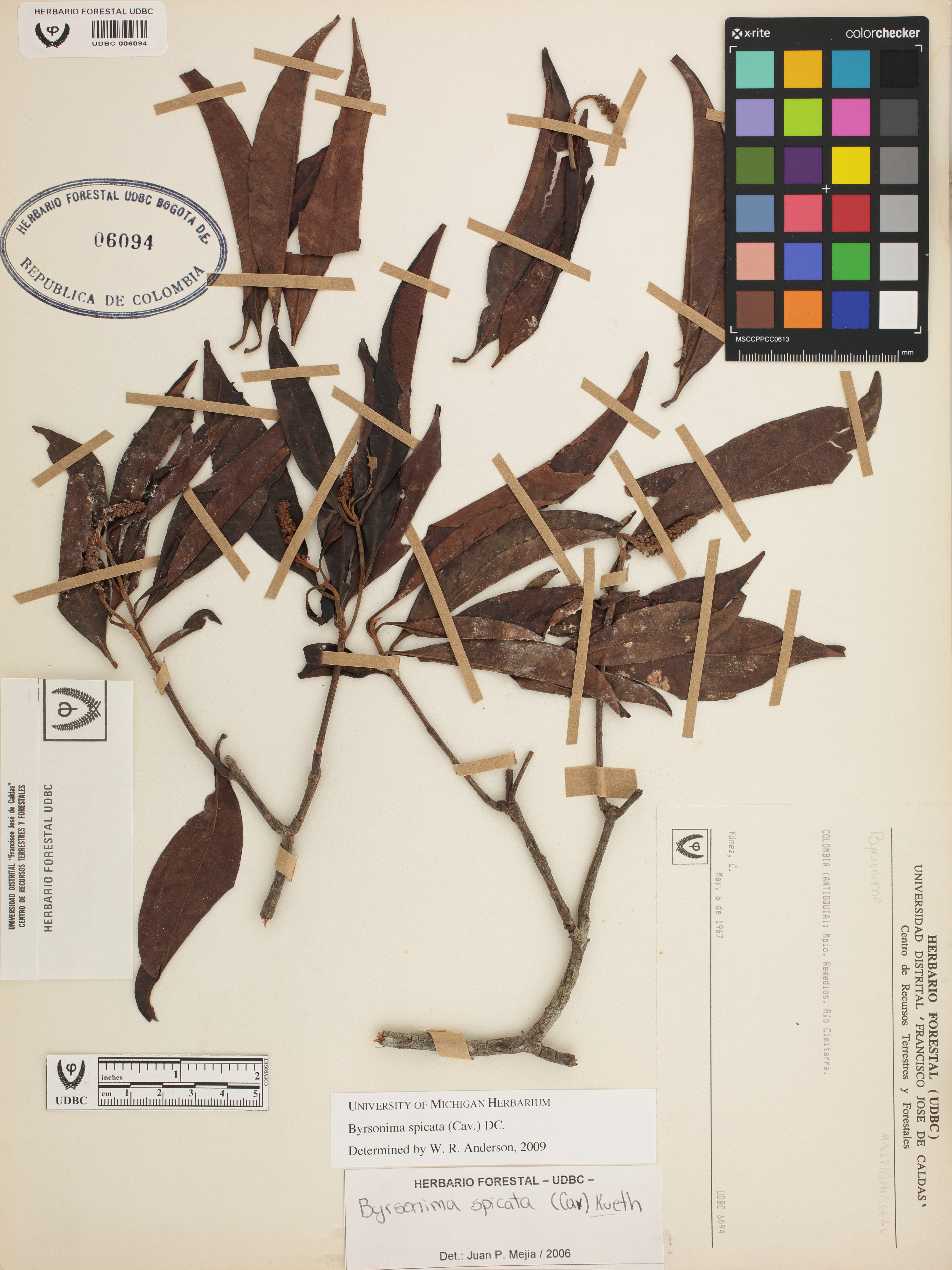 Fotografía del ejemplar Yúñez, C., determinado como Byrsonima spicata en el año 2009