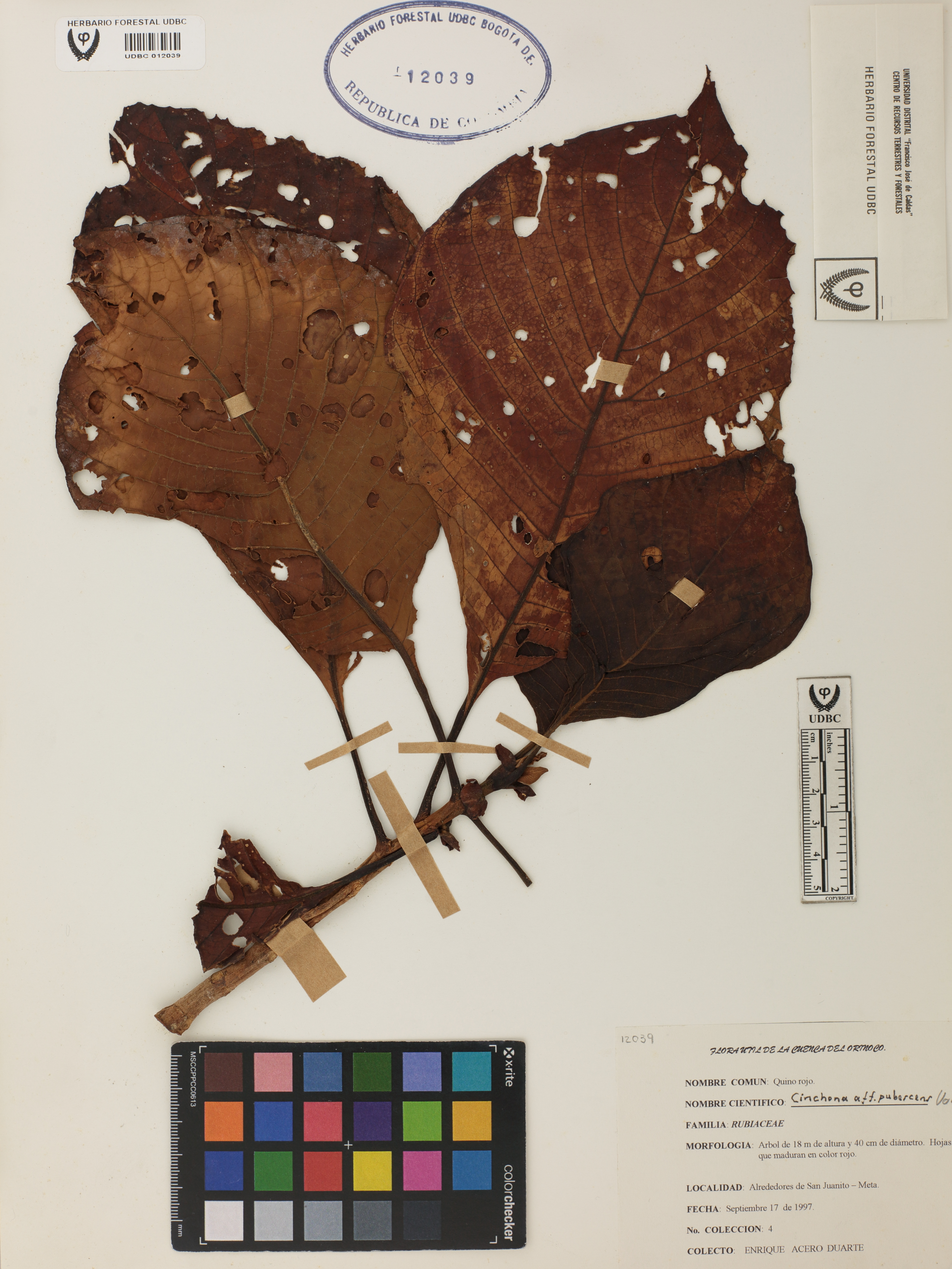 | dc.description | Fotografía del ejemplar Acero, E. 4, determinado como Cinchona pubescens | |
