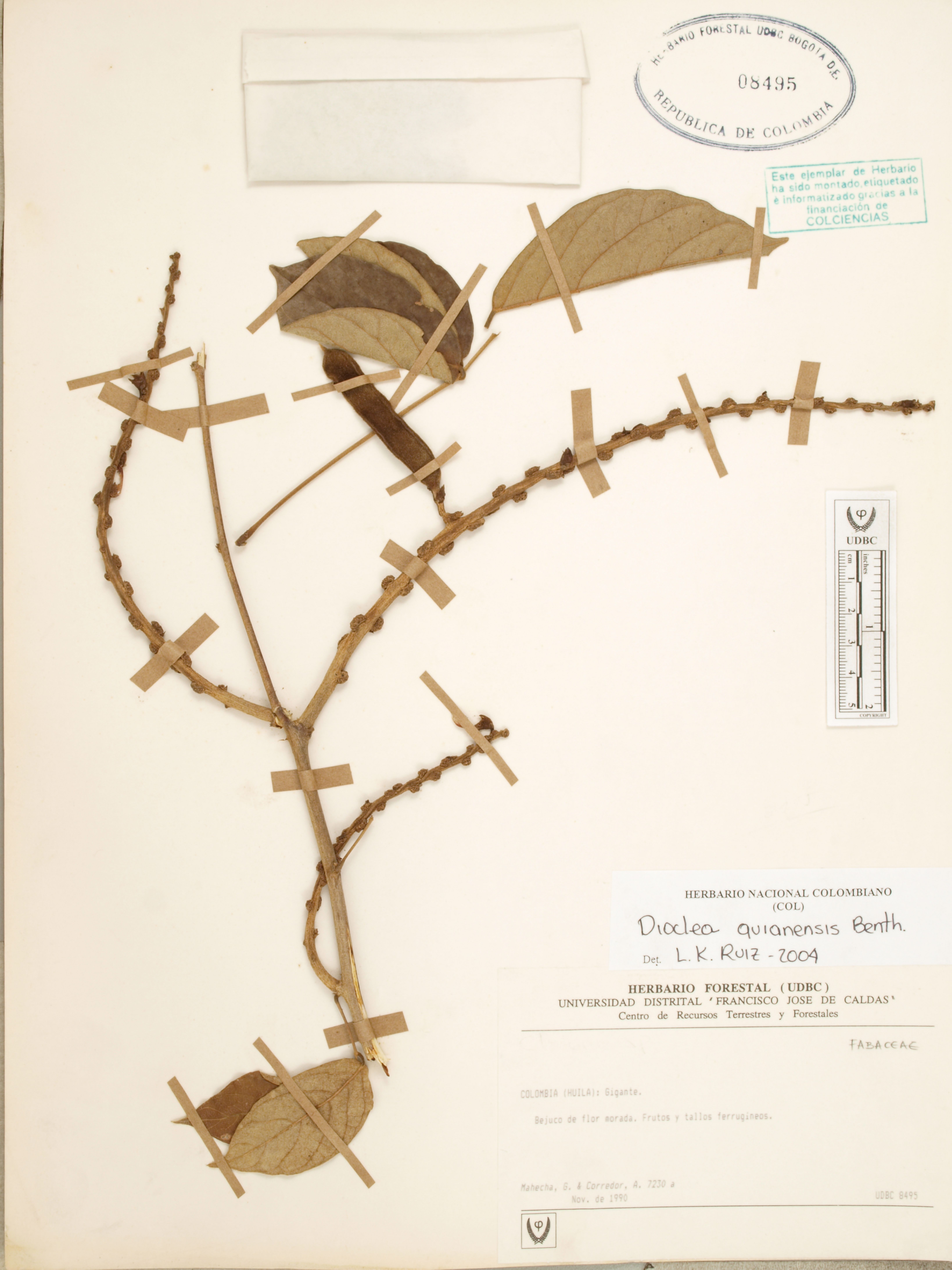 Fotografía del ejemplar Mahecha, G. 7230, determinado como Dioclea guianensis en el año 2004