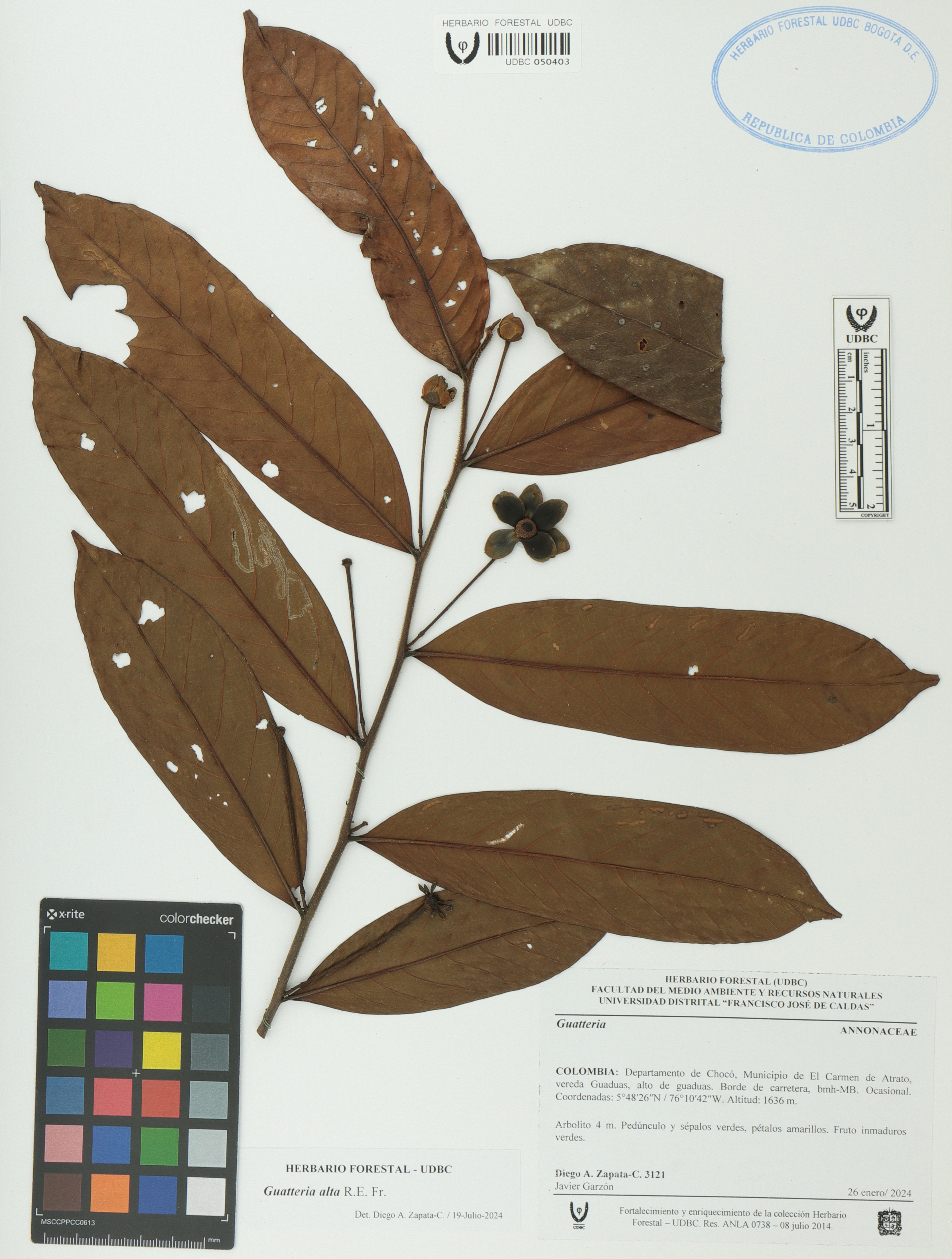 Fotografía del ejemplar Zapata-C., D. 3121, determinado como Guatteria alta en el año 2024