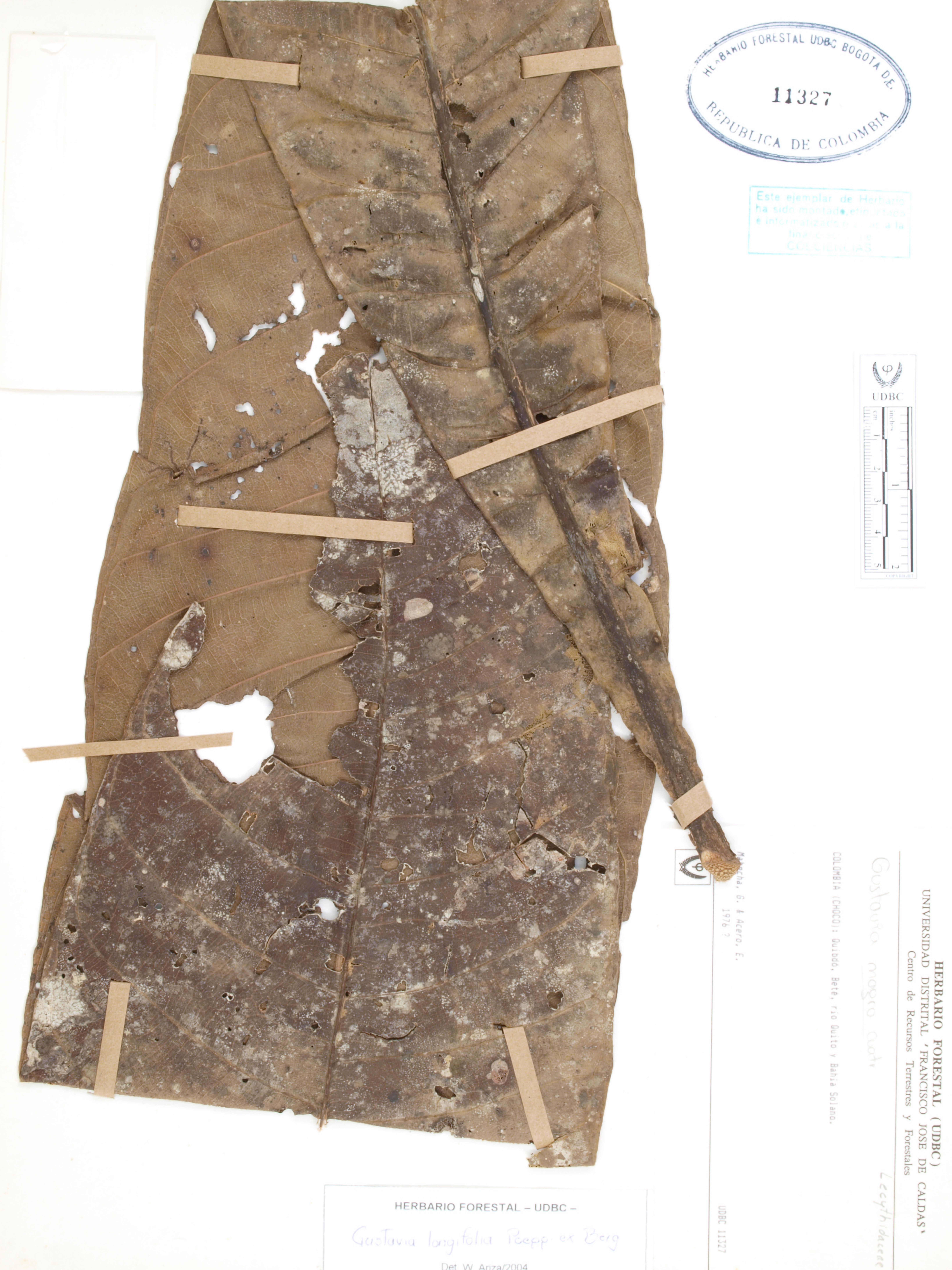 Fotografía del ejemplar Mahecha, G., determinado como Gustavia longifolia en el año 2004