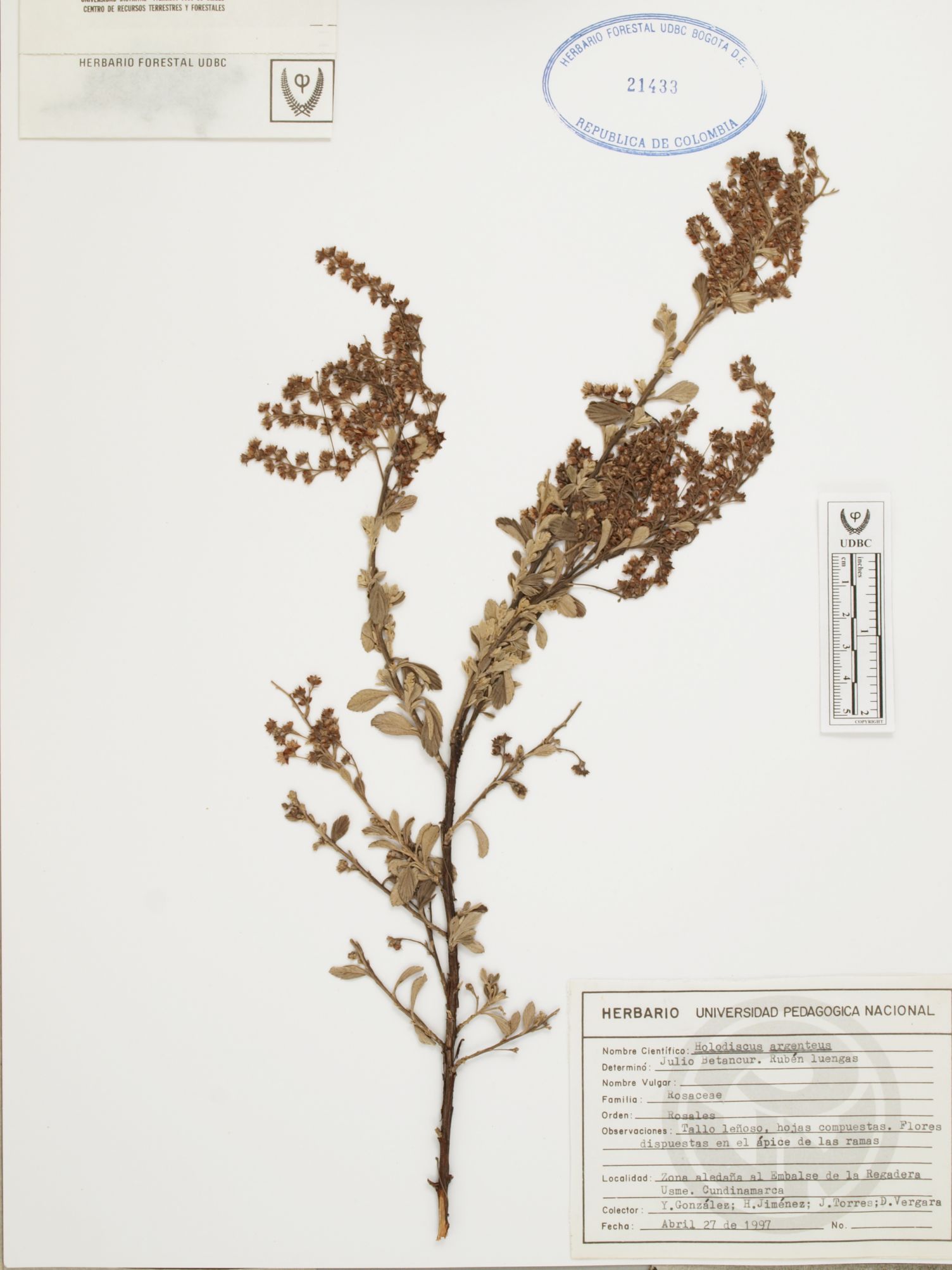 Fotografía del ejemplar González, Y., determinado como Holodiscus argenteus