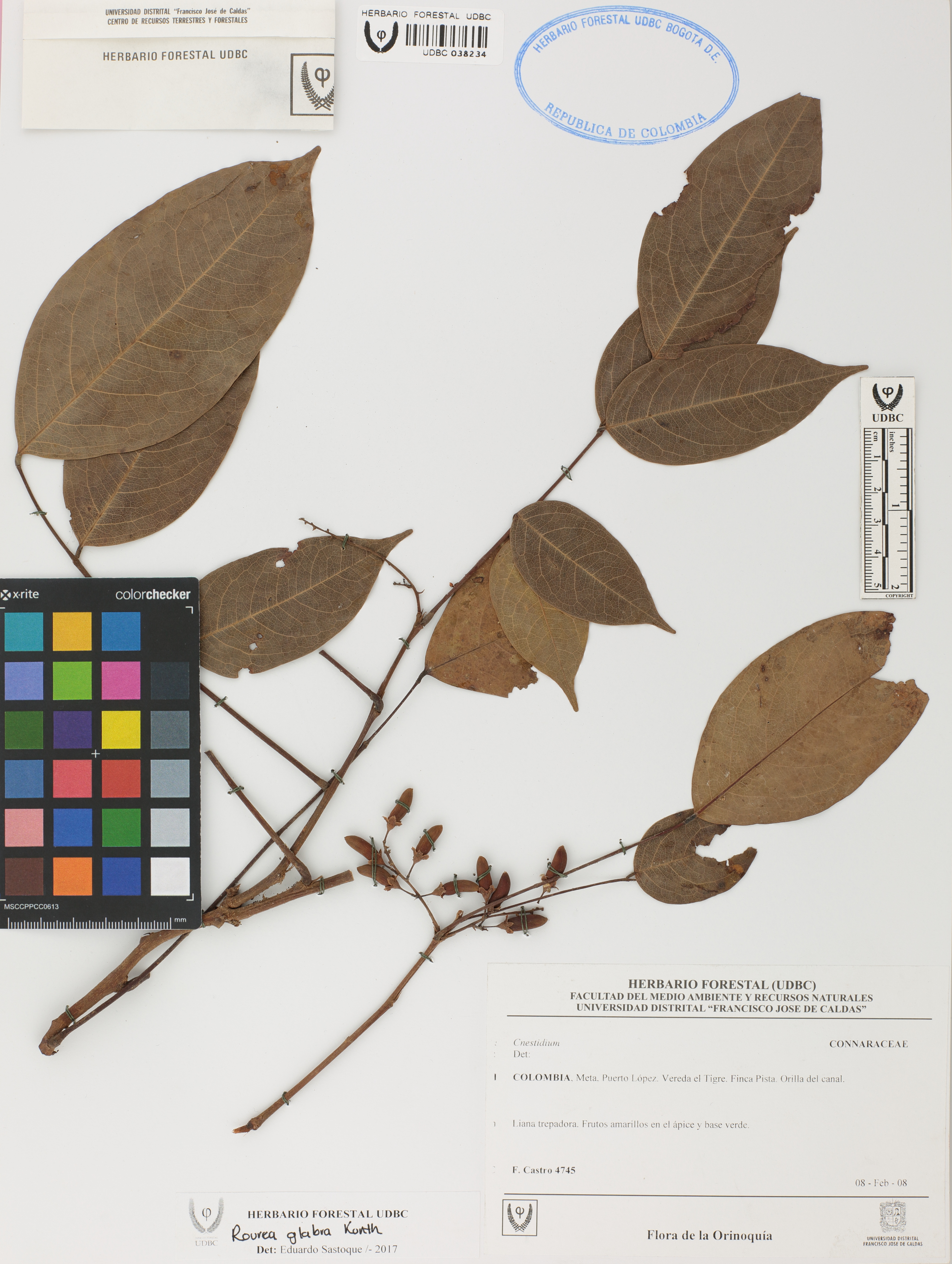 Fotografía del ejemplar Castro, F. 4745, determinado como Rourea glabra en el año 2017