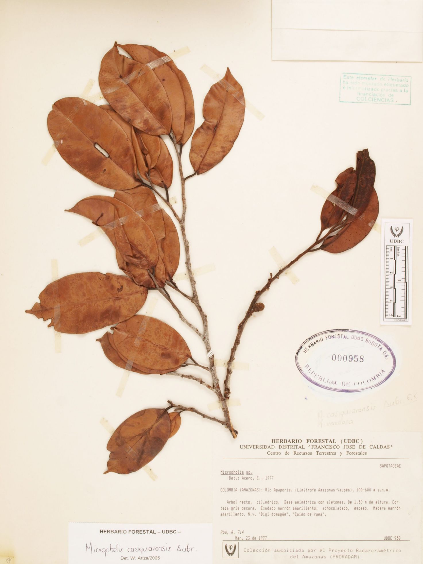Fotografía del ejemplar Roa, A. 714, determinado como Micropholis casiquiarensis en el año 2005