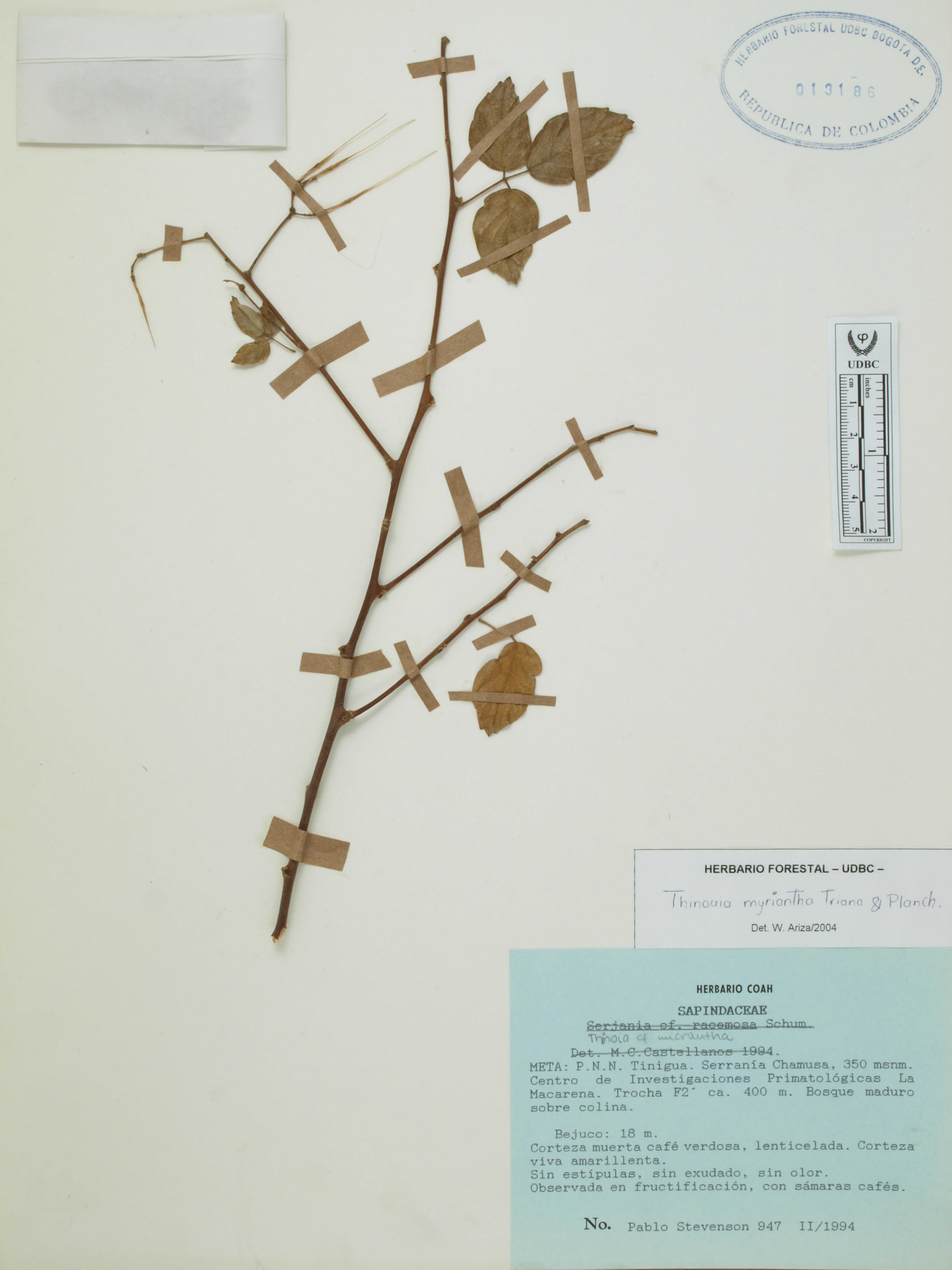 Fotografía del ejemplar Stevenson, P. 947, determinado como Thinouia myriantha en el año 2004
