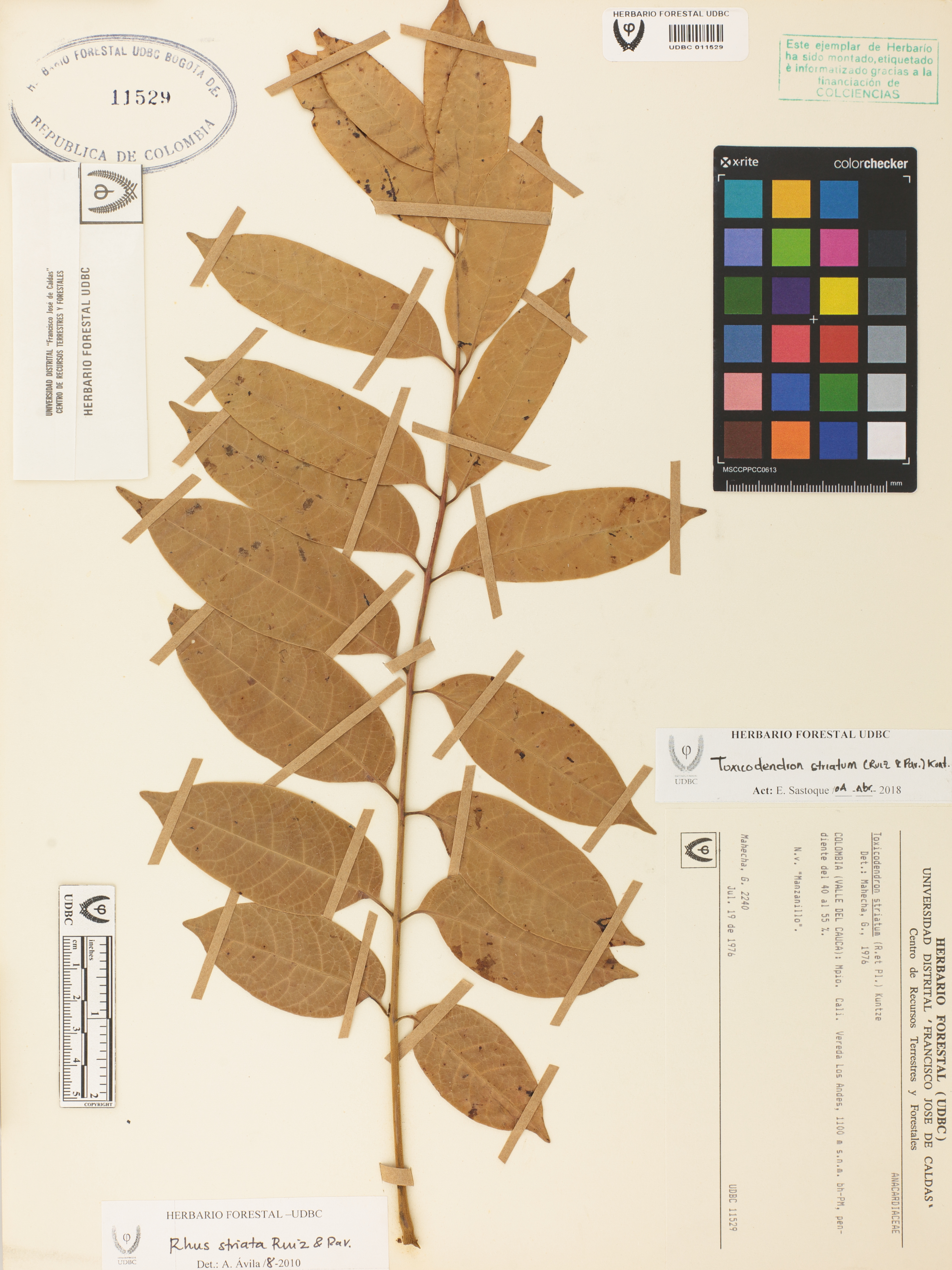 | dc.description | Fotografía del ejemplar Mahecha, G. 2240, determinado como Toxicodendron striatum en el año 2010 | |