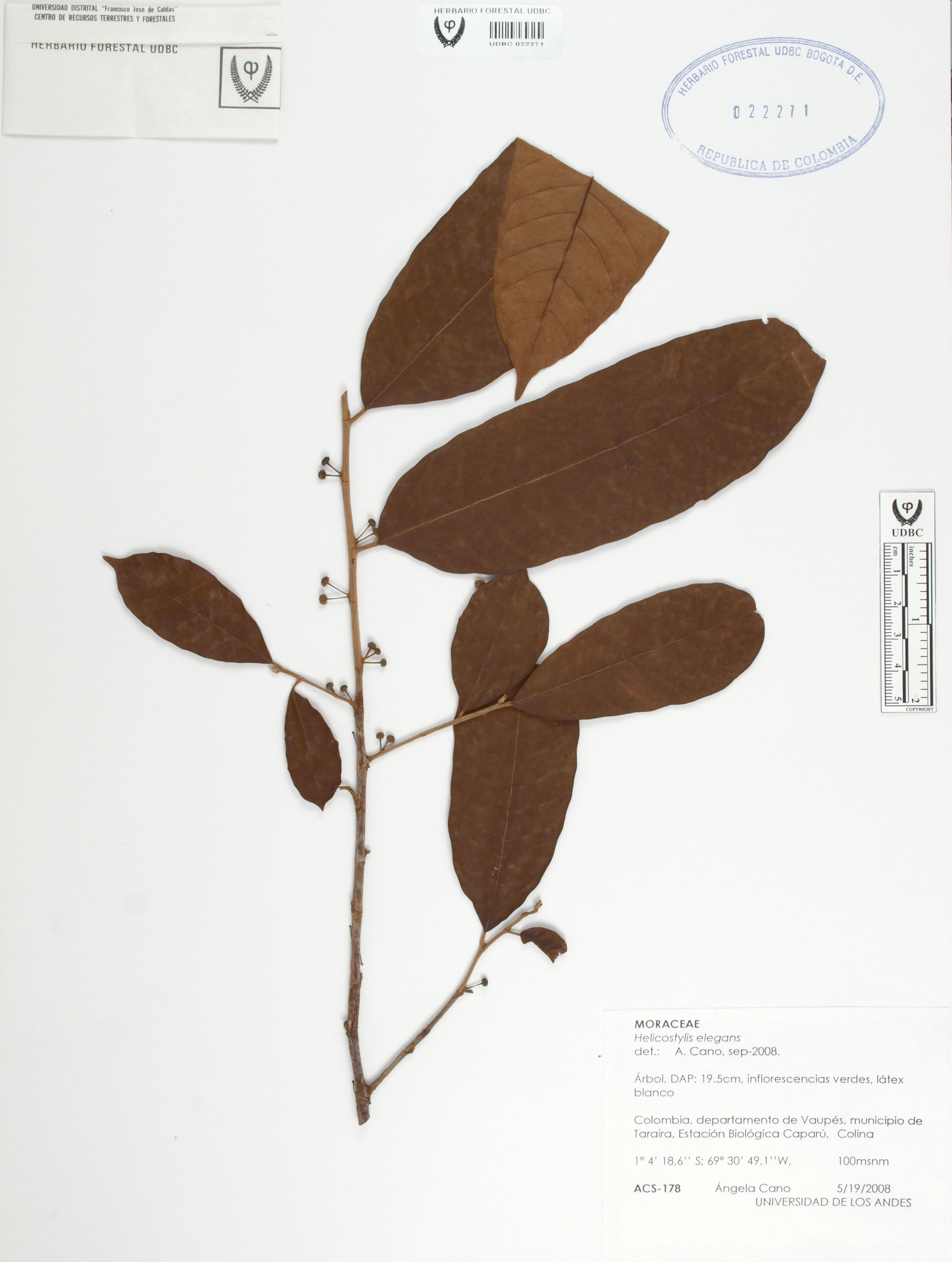 | dc.description | Fotografía del ejemplar Cano, A. 178, determinado como Helicostylis elegans en el año 2008 | |