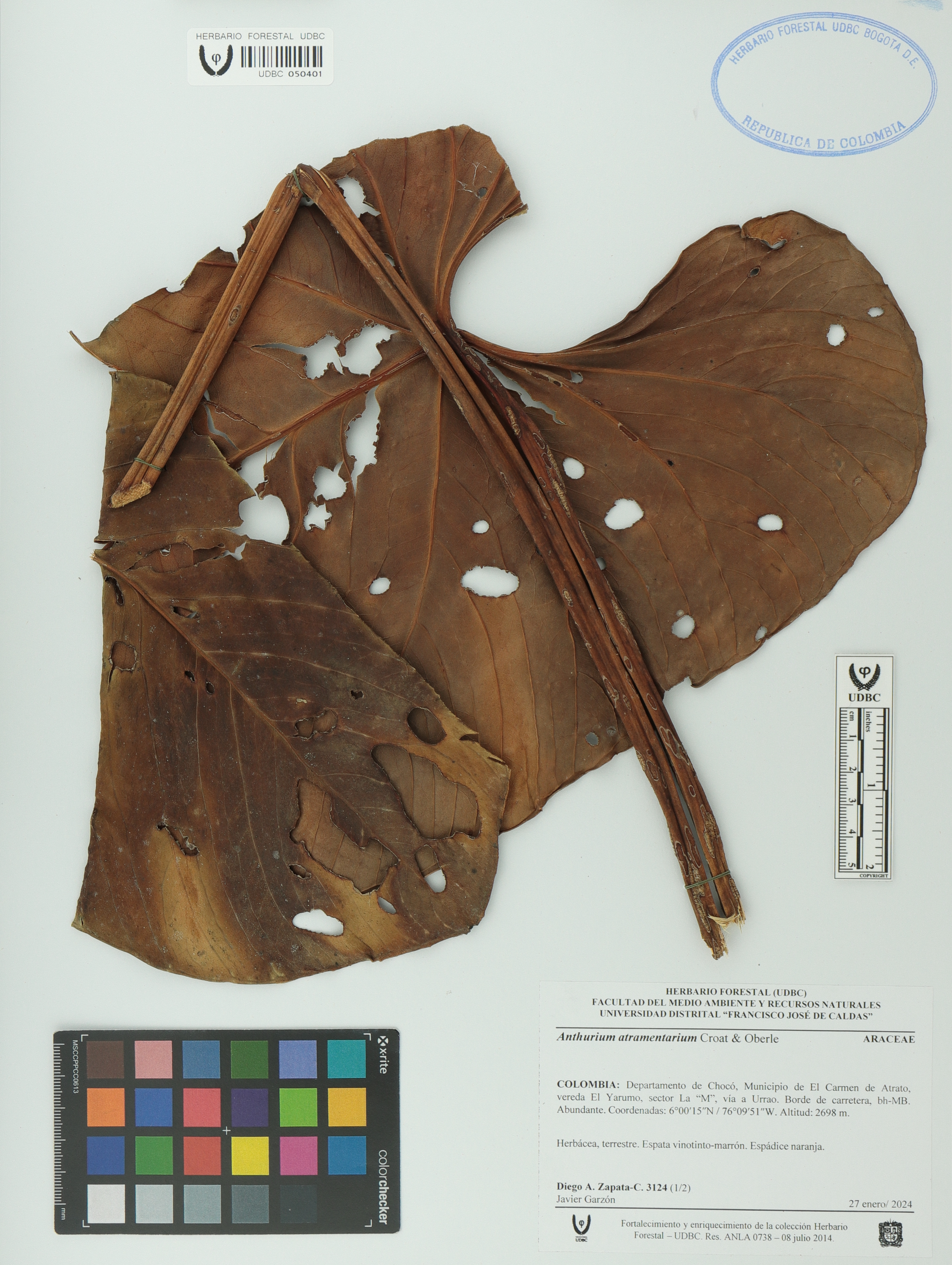 Fotografía del ejemplar Zapata-C., D. 3124 (1/2), determinado como Anthurium atramentarium en el año 2024