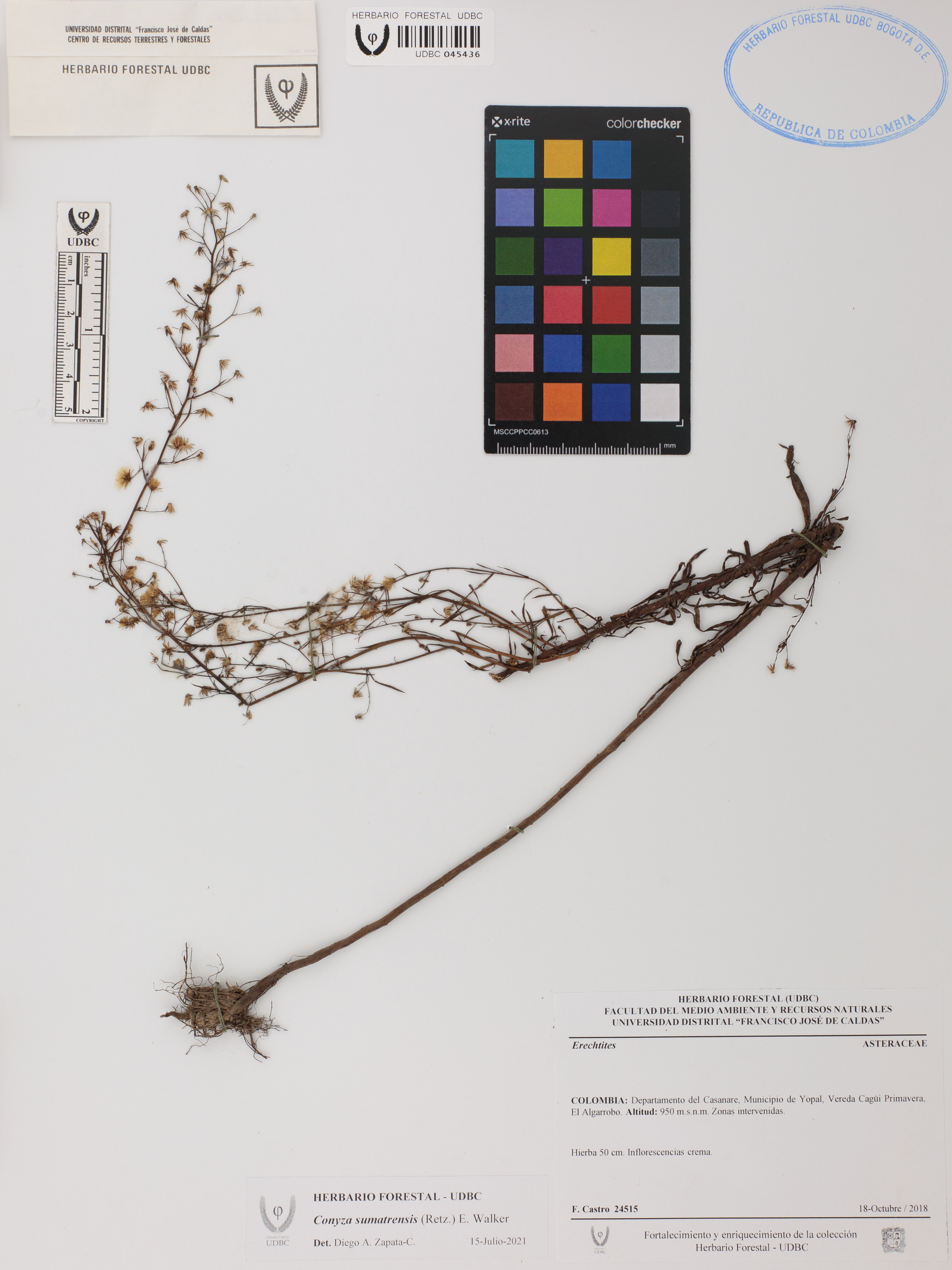 | dc.description | Fotografía del ejemplar Castro, F. 24515, determinado como Conyza sumatrensis en el año 2021 | |