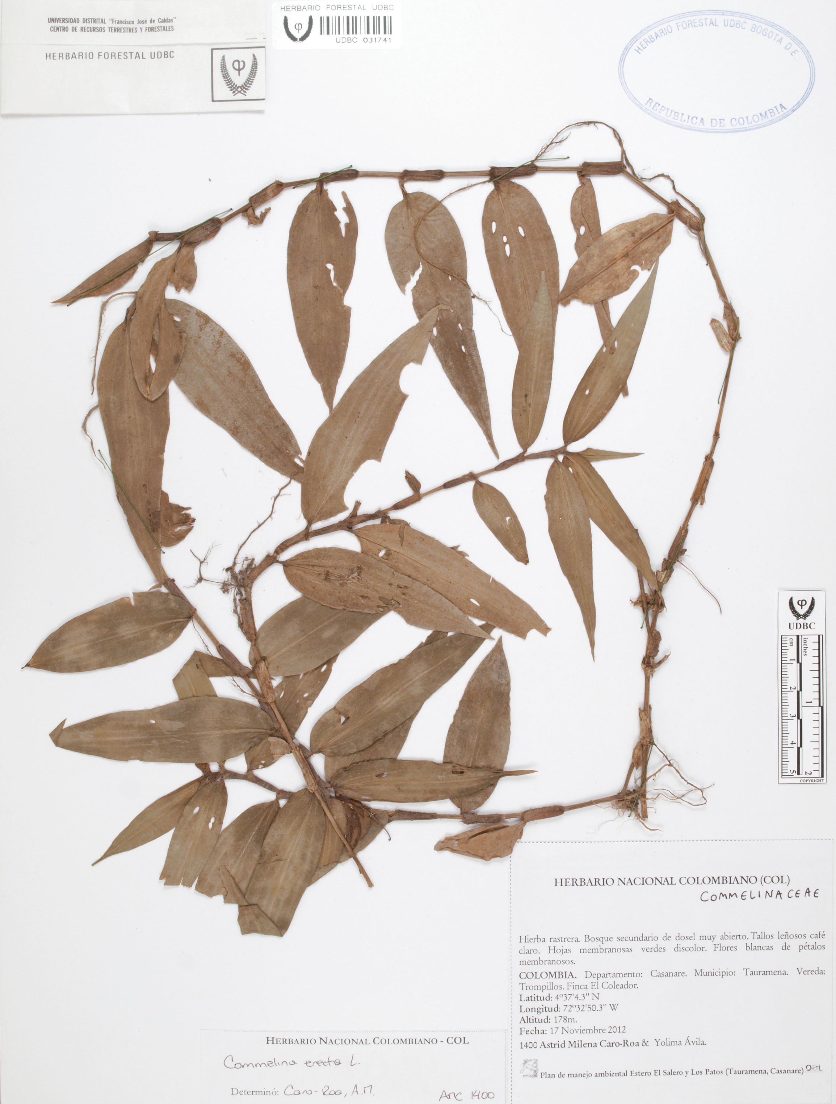 Fotografía del ejemplar Caro-Roa, A. 1400, determinado como Commelina erecta