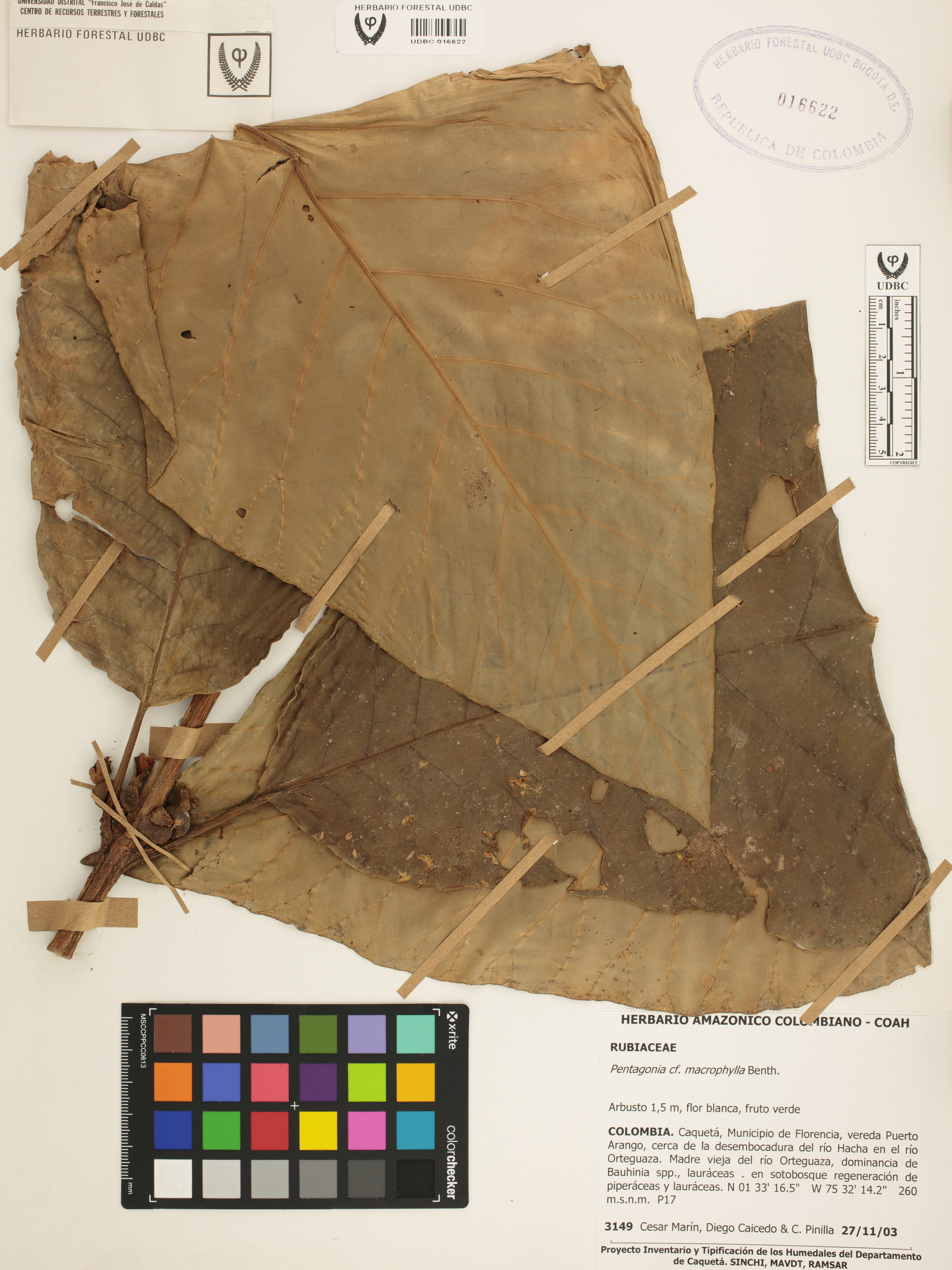 Fotografía del ejemplar Marín, C. 3149, determinado como Pentagonia amazonica en el año 2024