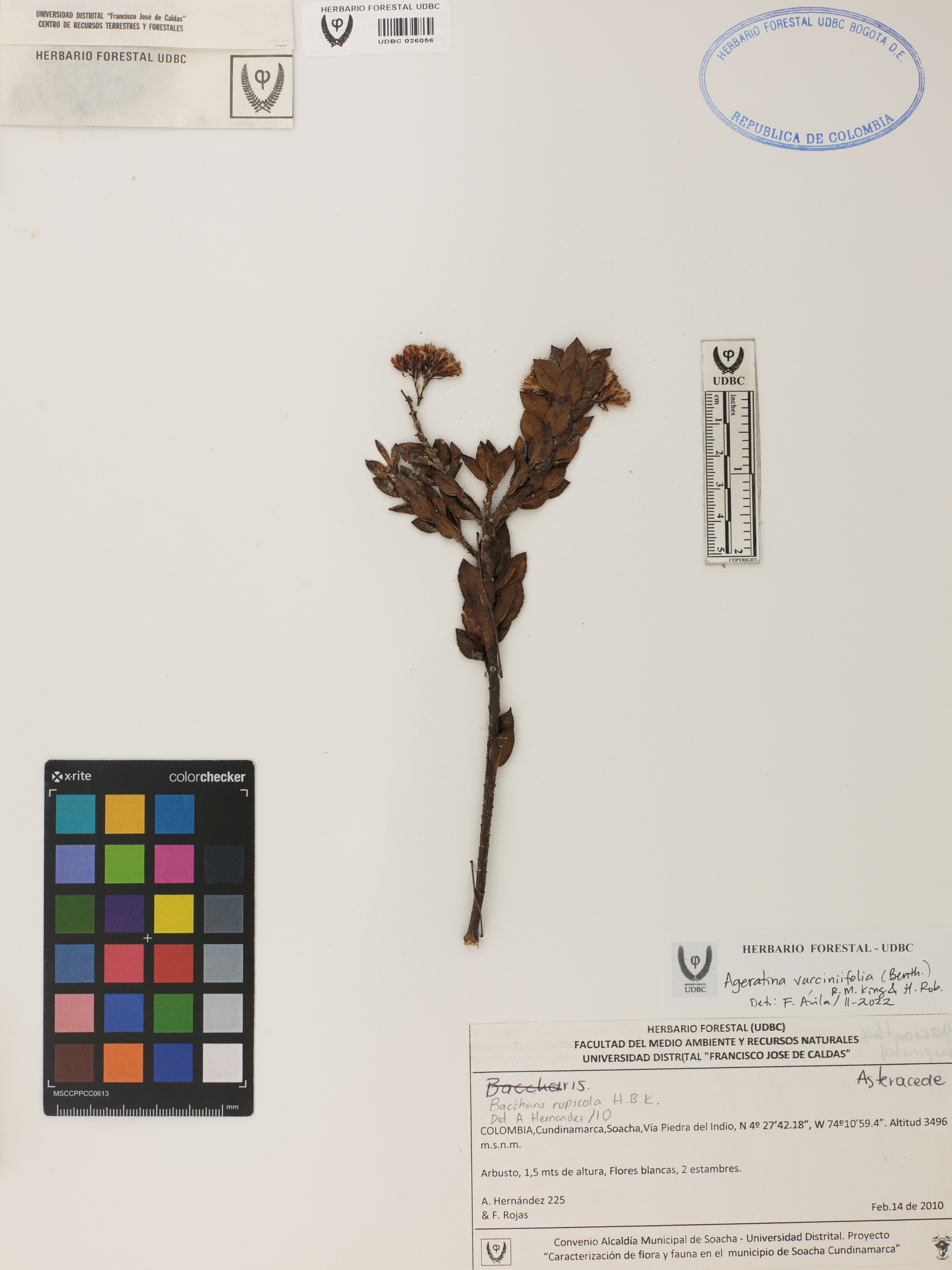 Fotografía del ejemplar Hernández, A. 225, determinado como Ageratina vacciniifolia en el año 2022