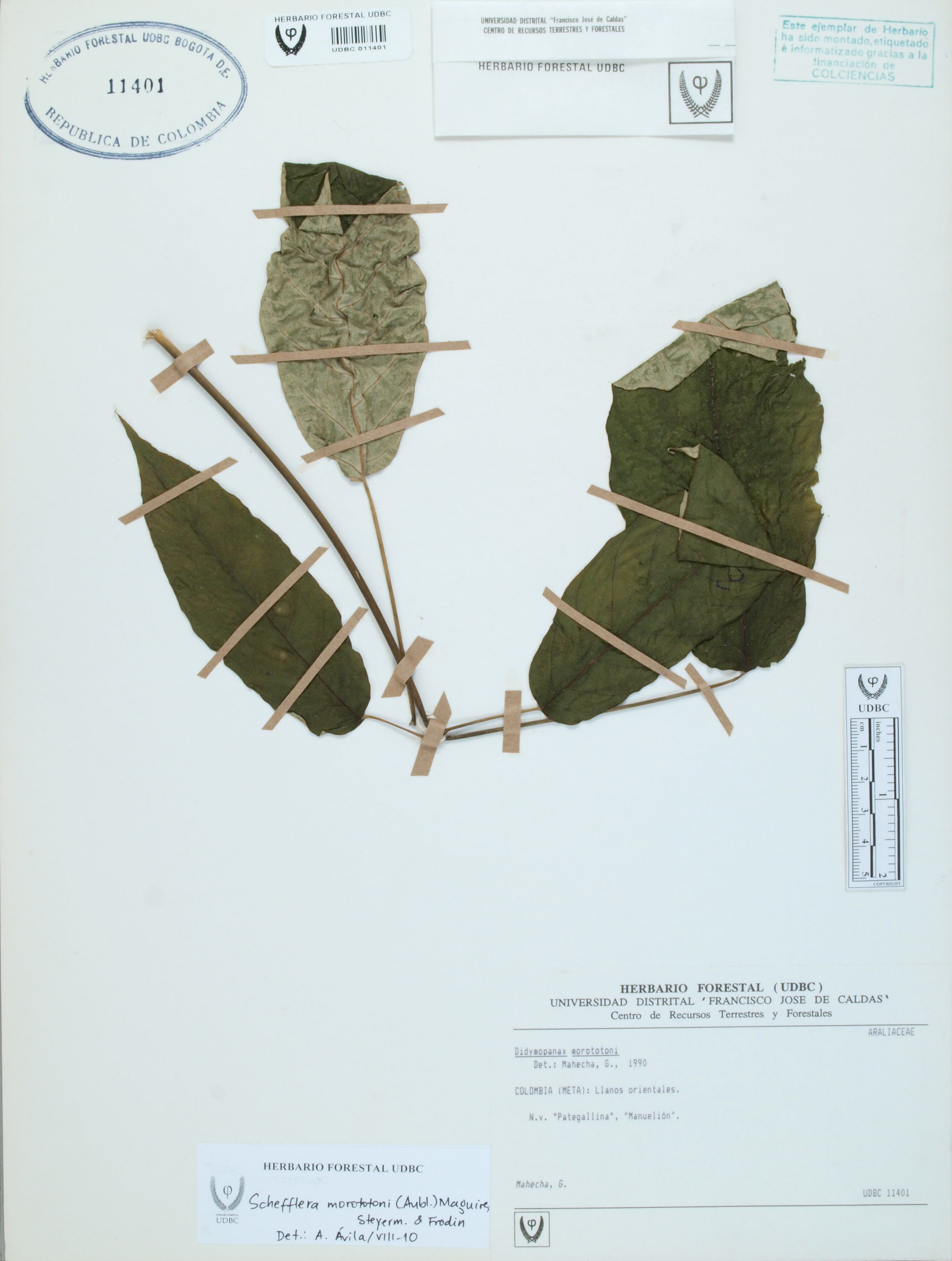 | dc.description | Fotografía del ejemplar Mahecha, G., determinado como Didymopanax morototoni en el año 2010 | |