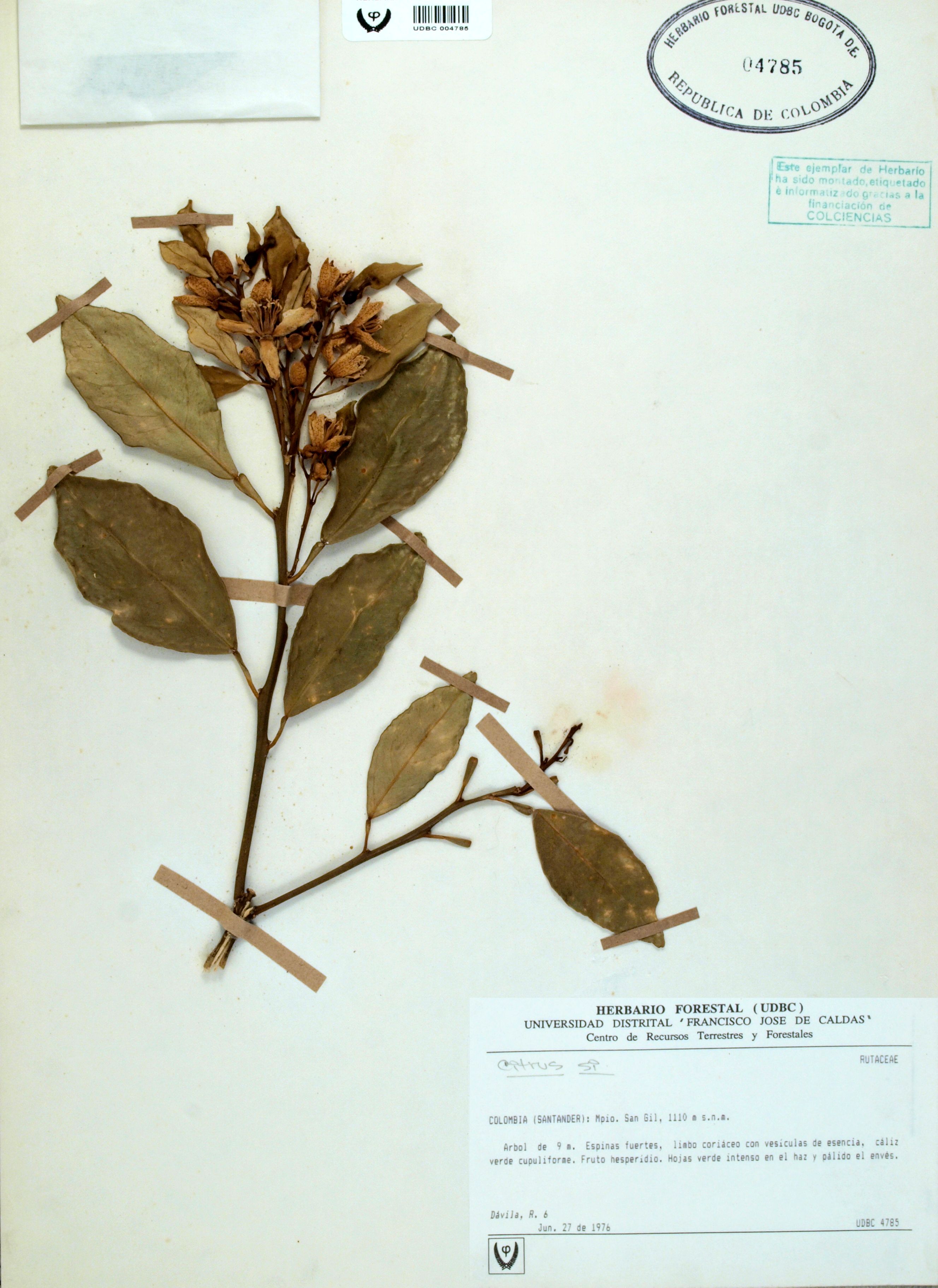 | dc.description | Fotografía del ejemplar Dávila, R. 6, determinado como Citrus sp. en el año 1995 | |