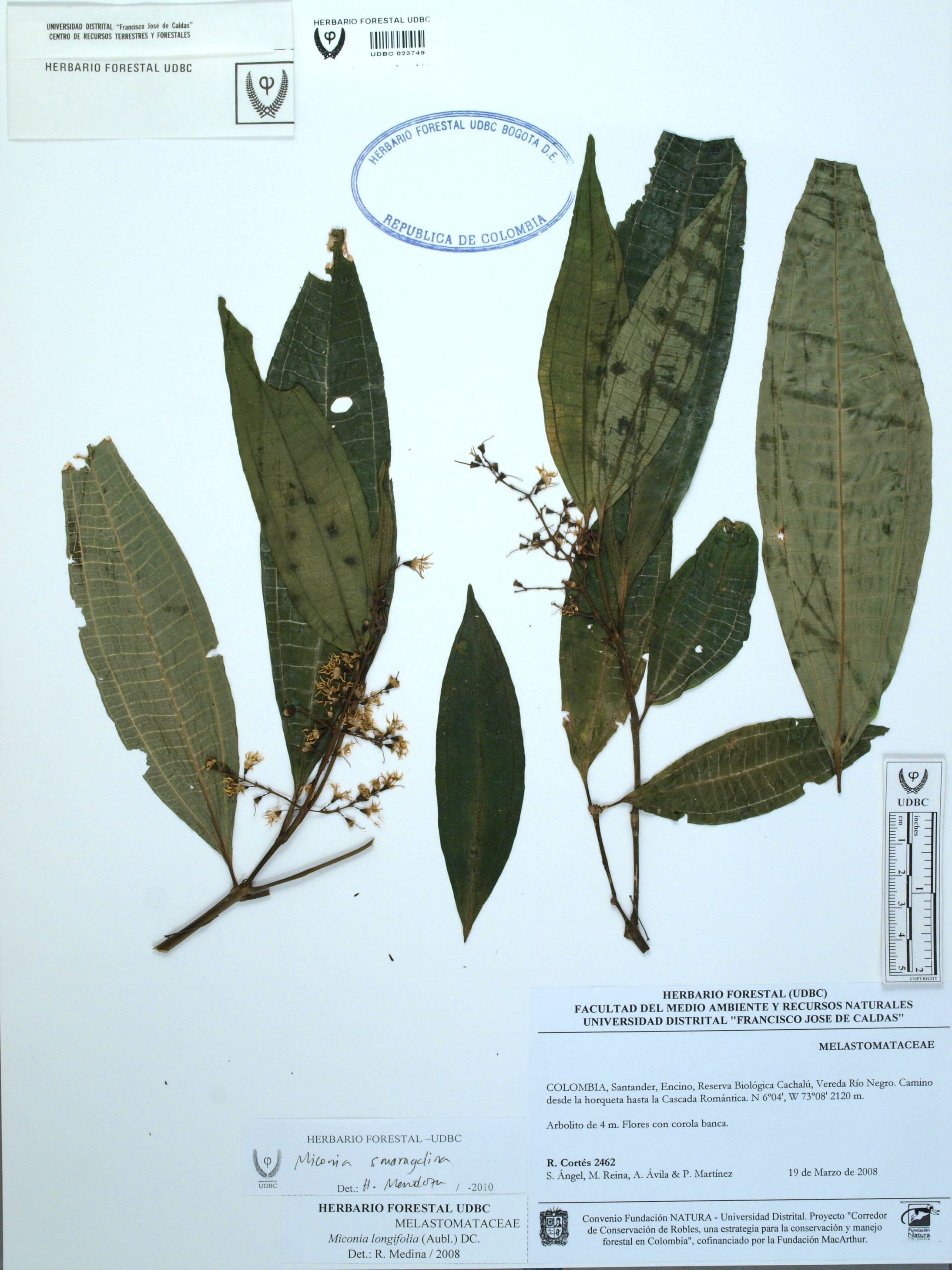 | dc.description | Fotografía del ejemplar Cortés-B., R. 2462, determinado como Miconia smaragdina en el año 2010 | |