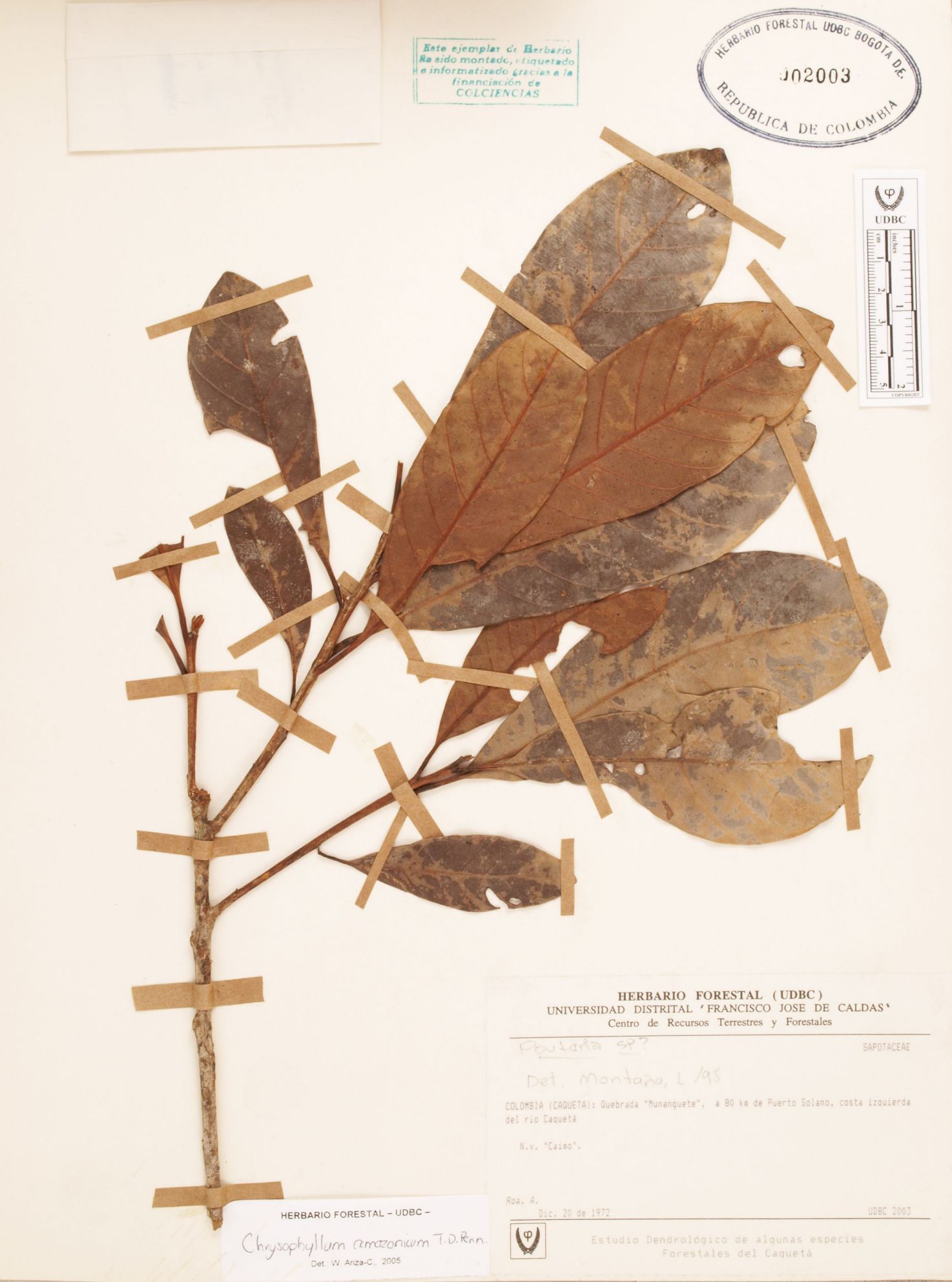 Fotografía del ejemplar Roa, A., determinado como Chrysophyllum amazonicum en el año 2005