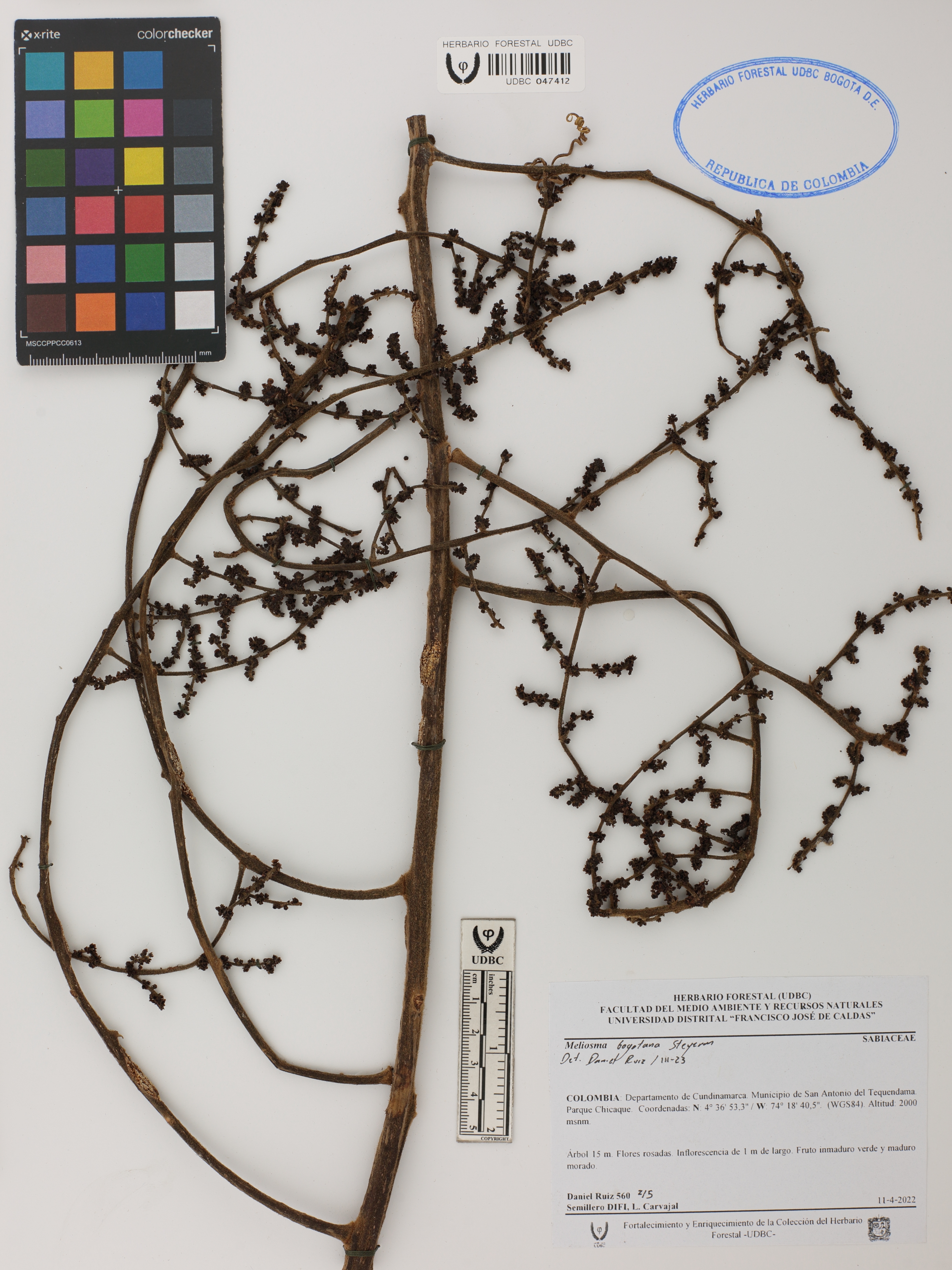| dc.description | Fotografía del ejemplar Ruiz, Daniel 560, determinado como Meliosma bogotana en el año 2023 | |