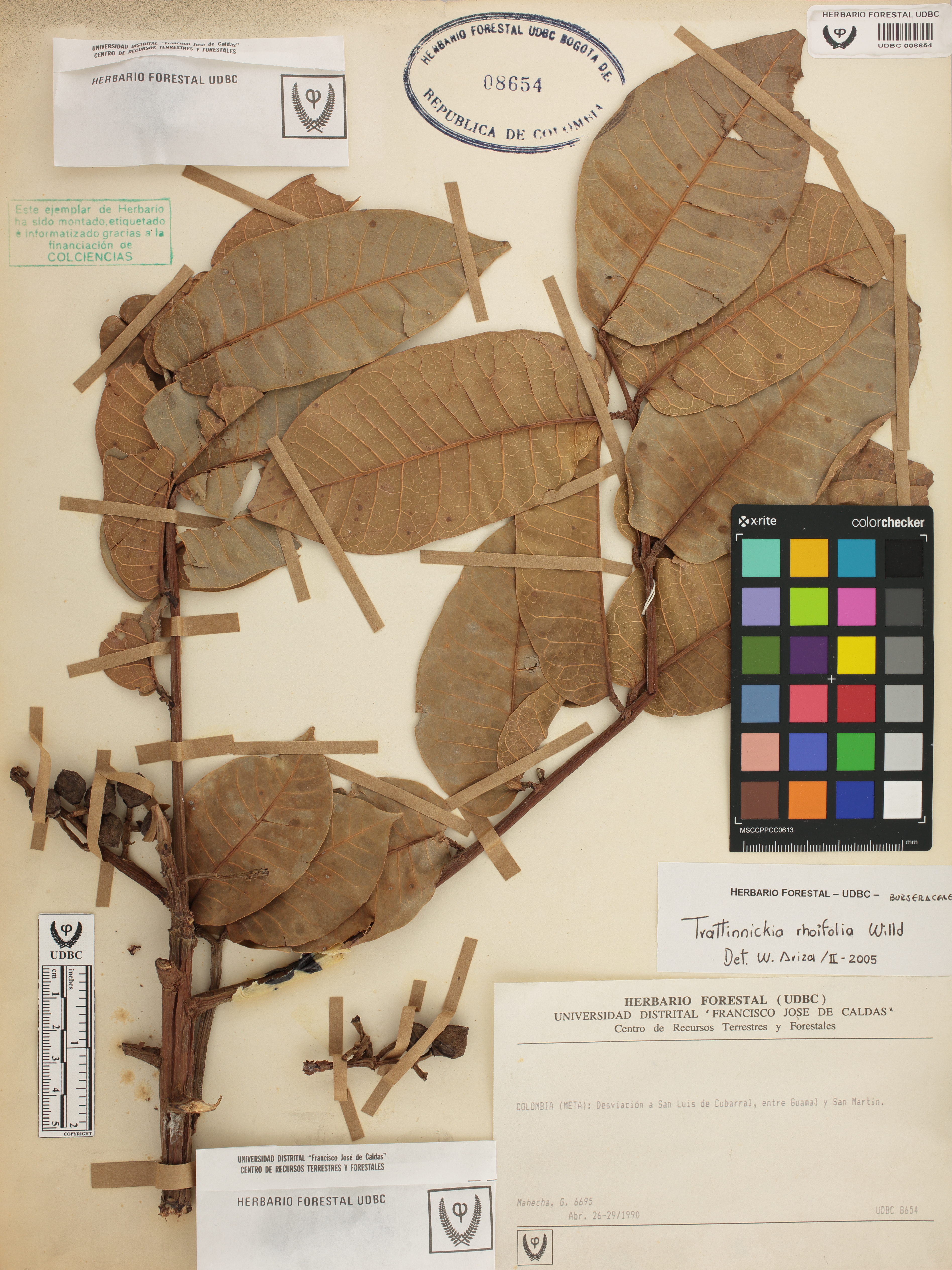Fotografía del ejemplar Mahecha, G. 6695, determinado como Trattinnickia rhoifolia en el año 2005