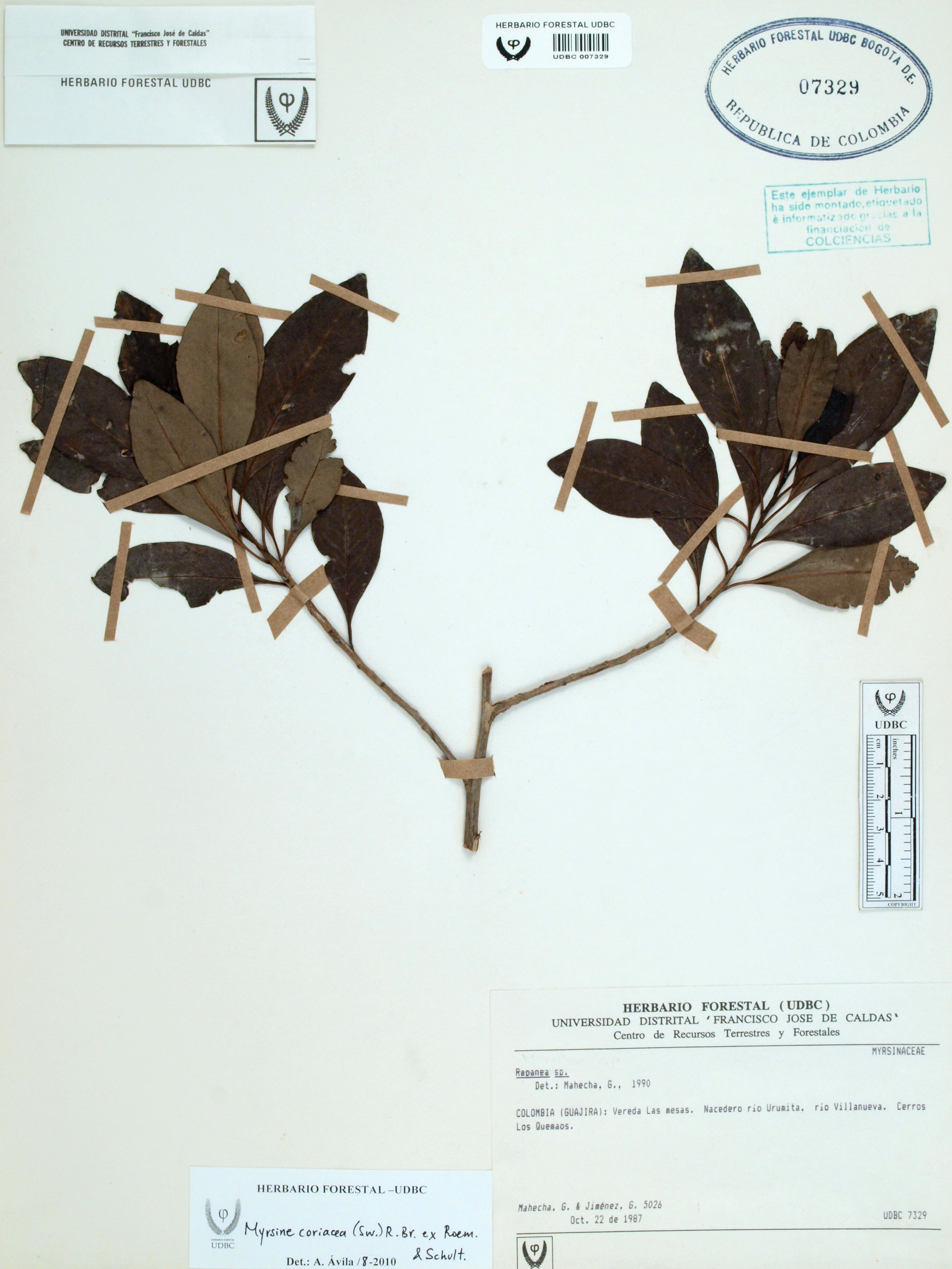| dc.description | Fotografía del ejemplar Mahecha, G. 5026, determinado como Myrsine coriacea en el año 2010 | |