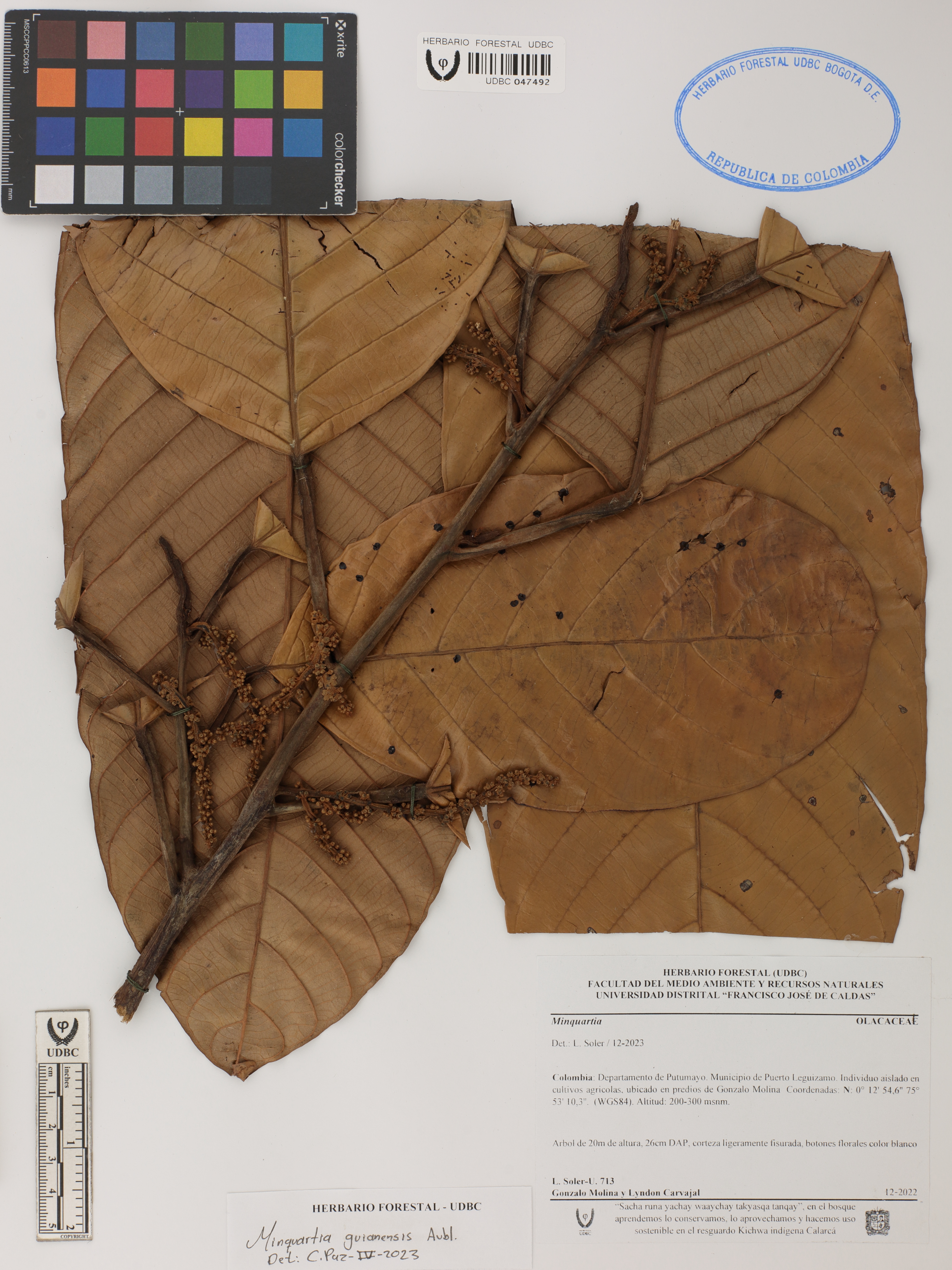 | dc.description | Fotografía del ejemplar Soler, L. 713, determinado como Minquartia guianensis en el año 2023 | |