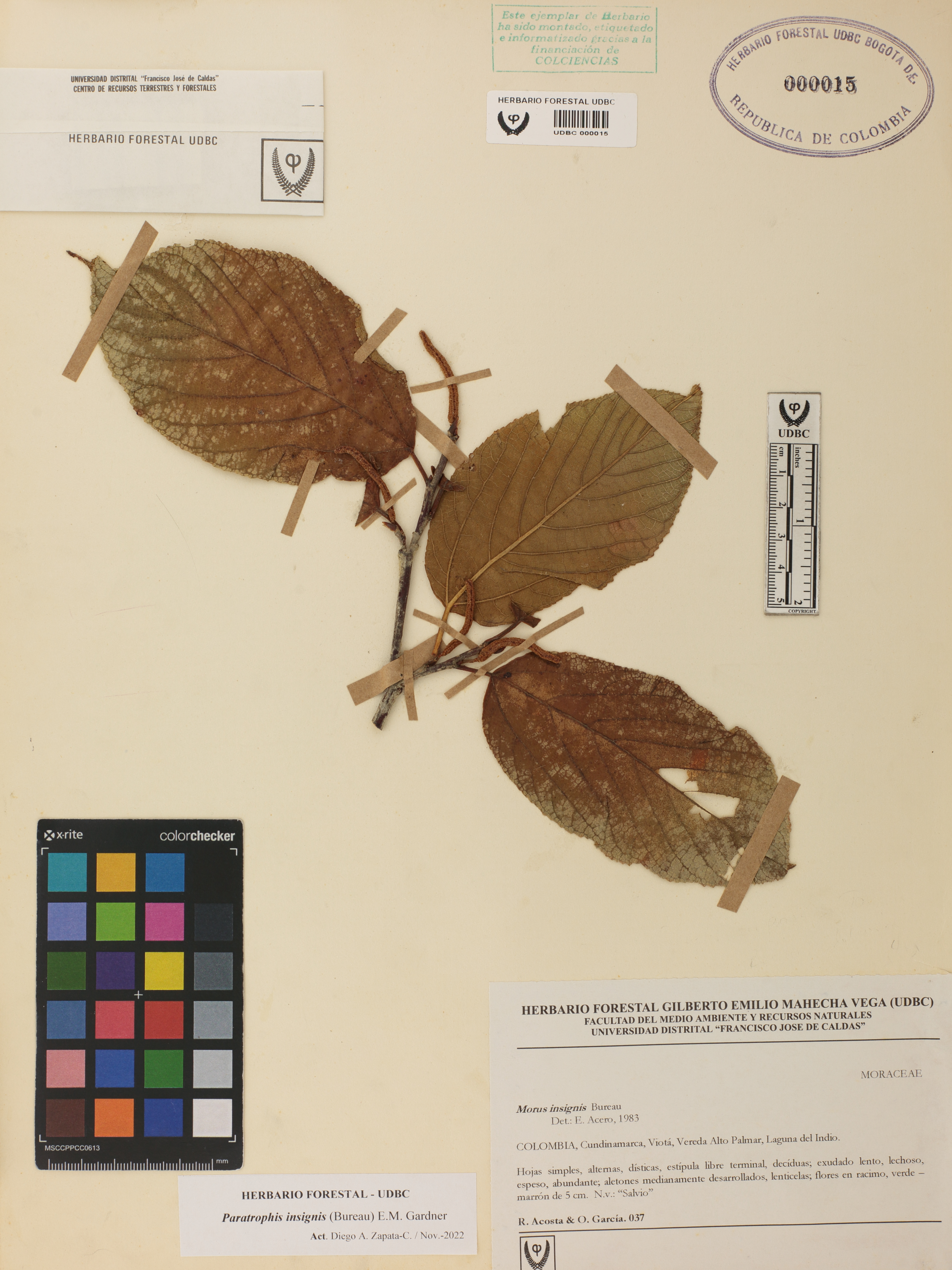 Fotografía del ejemplar Acosta, R. 37, determinado como Paratrophis insignis en el año 1983