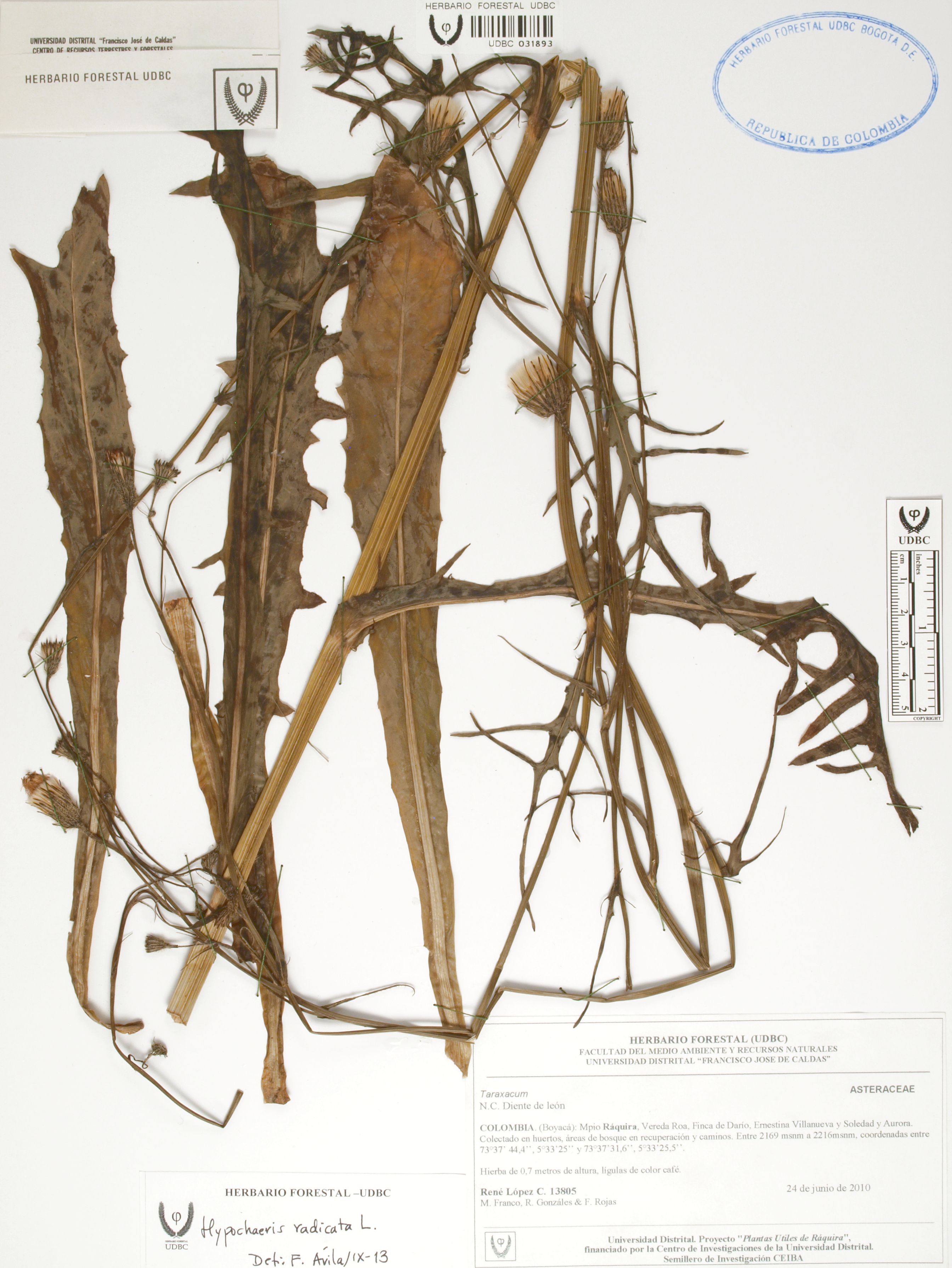 Fotografía del ejemplar López, R. 13805, determinado como Hypochaeris radicata en el año 2013
