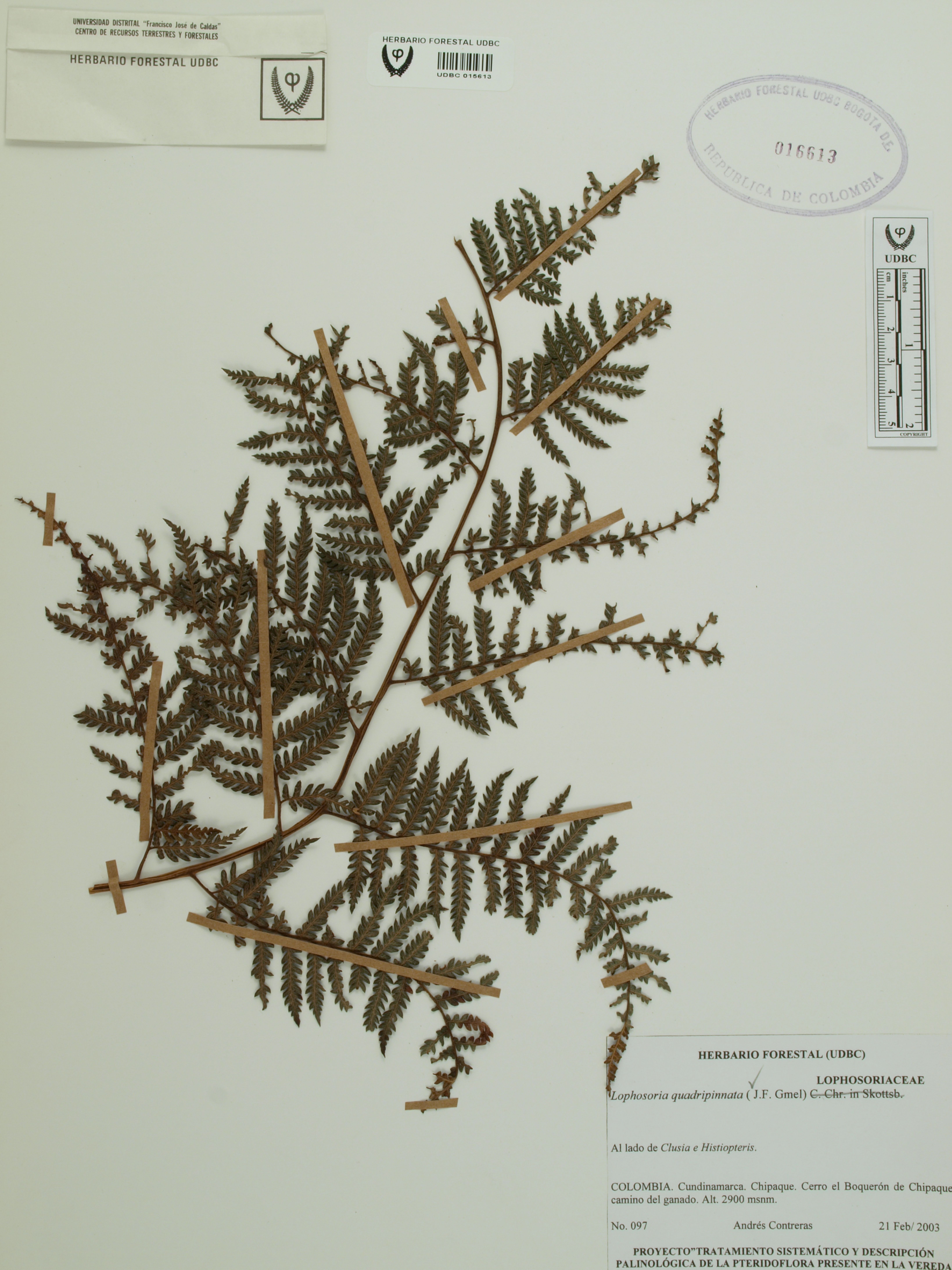 Fotografía del ejemplar Contreras, A. 97, determinado como Lophosoria quadripinnata